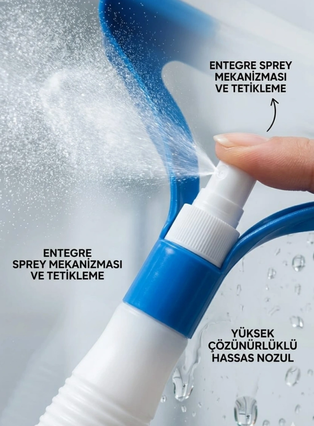 - Entegre Sprey Nozulu: Deterjanlı suyunuzu ürünün içine doldurun ve ihtiyacınız olan her an tek parmakla yüzeye püskürtün. Ekstra bir sprey şişesine ihtiyacınız kalmaz.