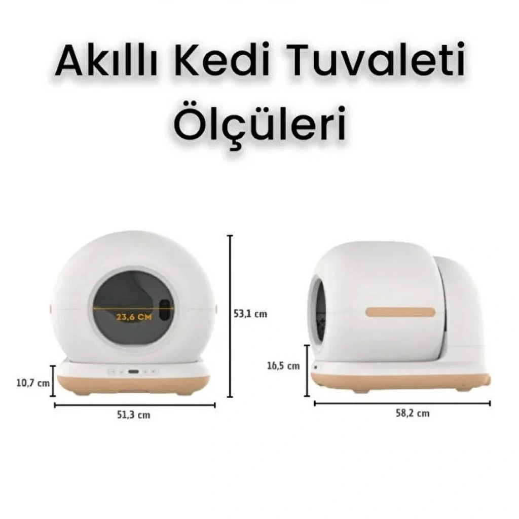 HD Kameralı Akıllı Kedi Tuvaleti, modern evcil hayvan bakımını bir üst seviyeye taşıyan gelişmiş teknolojisiyle hem sizin hem de kedinizin yaşam konforunu artırmak için tasarlanmıştır. Tam otomatik temizleme sistemi, günlük kum temizliği ihtiyacını ortadan kaldırarak zamandan büyük tasarruf sağlar ve yoğun yaşam temposunda dahi kedinizin hijyenini kusursuz şekilde korur. 75 litrelik geniş iç hacmi, sık kum boşaltma gereksinimini azaltır ve 12 kg’a kadar tüm kediler için rahat kullanım sunar. Geniş giriş açıklığı 23.6 cm olan bu akıllı tuvalet, 51.3 cm genişlik, 58.2 cm derinlik ve 53.1 cm yüksekliği ile kedinizin kendini güvende hissedeceği ferah bir alan oluşturur.Entegre UV sterilizasyon sistemi, bakteri ve mikroorganizmaları etkili şekilde yok ederek kum kabının her kullanım sonrasında hijyenik kalmasını sağlar. Bu özellik, özellikle idrar yolu enfeksiyonlarına yatkın kediler için ek bir güvenlik sunar. Wi-Fi bağlantısı ile çalışan sistem, mobil uygulama üzerinden uzaktan yönetilebilir ve HD kamerası sayesinde kedinizin tuvalet kullanımını anlık olarak izlenebilir. Uygulamadaki idrar takip fonksiyonu, idrar yolu tıkanıklığı gibi ciddi sağlık problemlerinin erken fark edilmesini sağlayarak kedinizin sağlığını korur.Kapalı tasarımı sayesinde koku kontrolünü maksimum seviyeye çıkarır ve evinizin havasını temiz tutar. Titreşim önleyici taban yapısı 10.7 cm yüksekliğiyle dengeli bir duruş sunarken, 16.5 cm taban yüksekliği iç mekan konforunu en üst düzeye taşır. Sağlam ve yüksek kalite malzemelerden üretilen bu akıllı tuvalet, uzun ömürlü bir kullanım sunarak uluslararası kalite standartlarını karşılayan dayanıklı bir yapıya sahiptir. Evcil hayvan bakımını kolaylaştırmak isteyen herkes için ideal, yenilikçi ve güvenilir bir çözümdür. Paket İçeriği1 Adet HD Kameralı Akıllı Kedi Tuvaleti