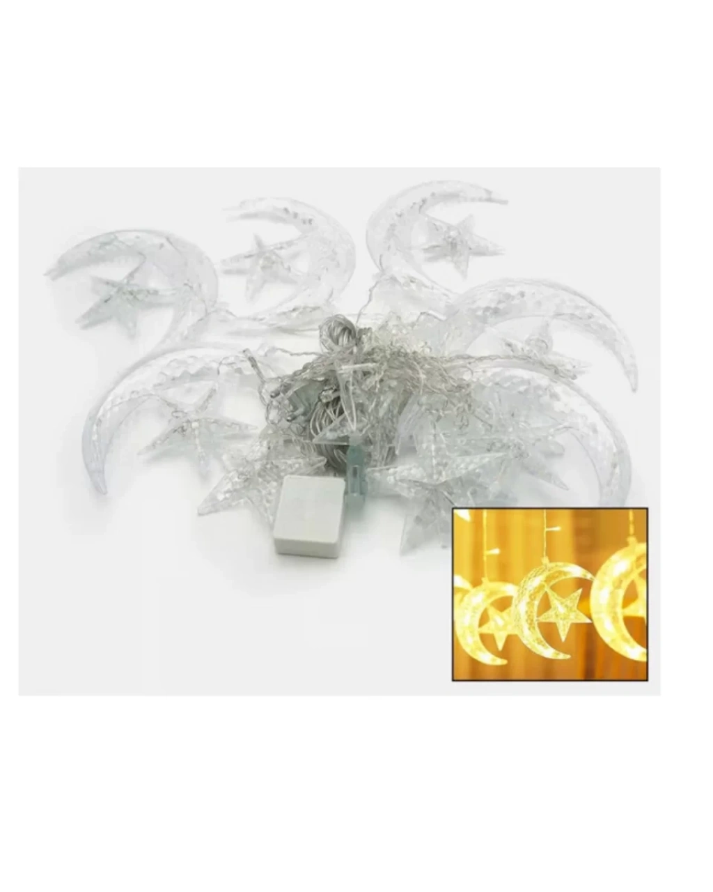 Hilal ve yıldız figürlü dekoratif perde ışık, yaşam alanlarınıza sadece bir aydınlatma değil, aynı zamanda duygusal bir ambiyans kazandırır. Sıcak beyaz tonuyla karanlık ortamda yumuşak ve romantik bir ışık yayarak bulunduğu mekâna huzurlu bir atmosfer oluşturur. Özellikle akşam saatlerinde tül perde önünde, pencere kenarında ya da duvar fonunda kullanıldığında ortama masalsı bir görünüm kazandırır.İki farklı aydınlatma modu sayesinde ister sabit ışık, ister yanıp sönen efekt tercih edebilirsiniz. Sabit mod daha sakin ve sofistike bir görünüm sunarken, yanıp sönen mod özel günlerde ve davetlerde enerjik bir hava oluşturur. Böylece ürünü hem günlük dekorasyonda hem de özel organizasyonlarda rahatlıkla kullanabilirsiniz.Yüksek kaliteli plastik gövde ve PVC kaplamalı kablo yapısı sayesinde hem dayanıklı hem de güvenlidir. Isıya karşı dirençli tasarımı sayesinde uzun süre açık kaldığında bile güvenli kullanım sağlar. Şık hilal ve yıldız tasarımı, modern ve geleneksel dekorasyon stilleriyle uyum sağlar.Ev, balkon, teras, restoran, vitrin, organizasyon alanları ve özel gün süslemelerinde rahatlıkla tercih edilebilir. Dekoratif yapısı sayesinde bulunduğu ortamı anında daha estetik ve sıcak bir görünüme kavuşturur.