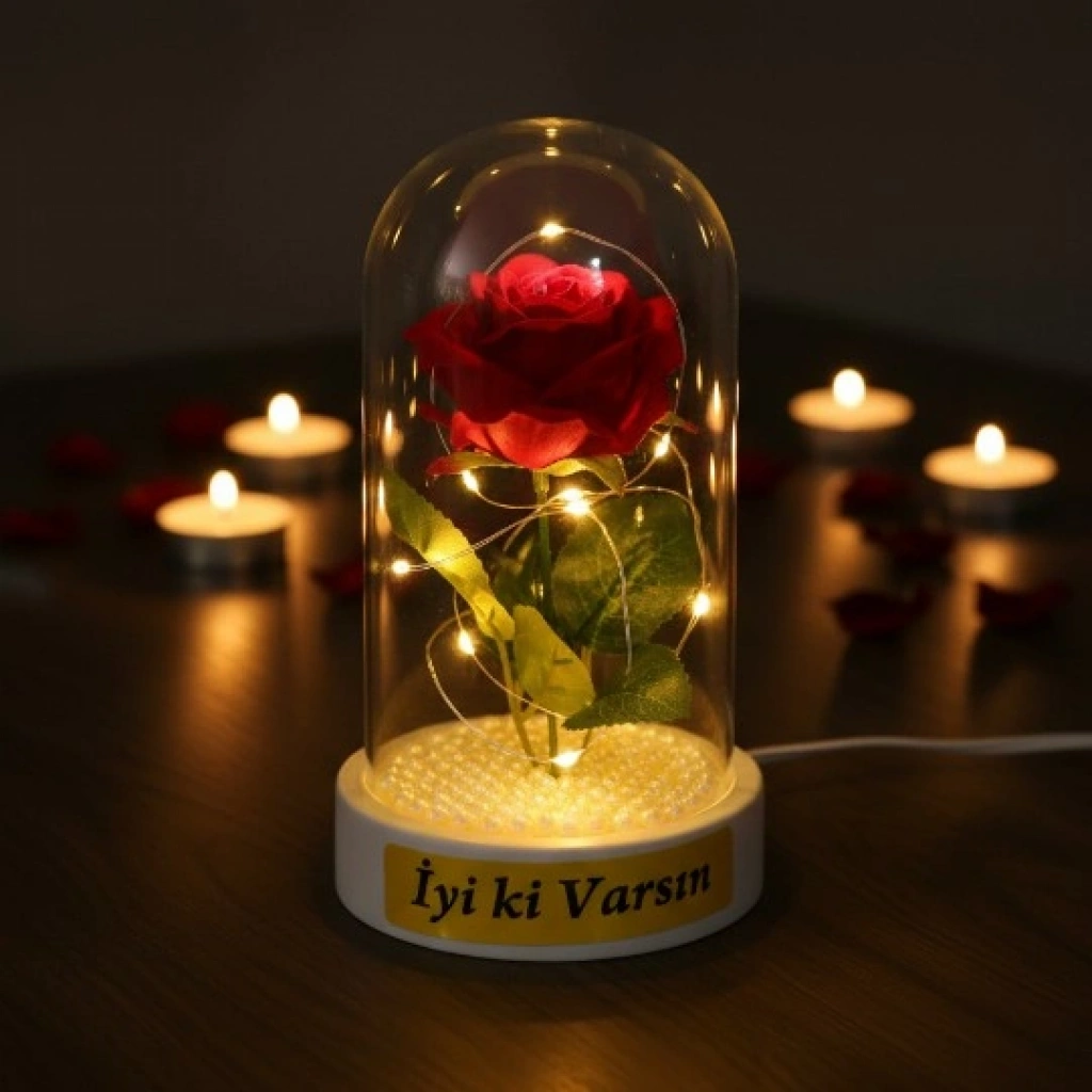 İncili ledli gül fanus, zarif detayları ve sıcak ışık etkisiyle yaşam alanlarına romantik bir ambiyans kazandıran dekoratif bir üründür. Şeffaf fanus içerisinde yer alan tekli yapay gül, taban kısmındaki inci detaylarıyla estetik bir bütünlük sunar. Sahip olduğu gün ışığı LED aydınlatma sayesinde yumuşak ve huzur verici bir ışık yayarak masa, komodin ve raf üzerinde şık bir görünüm oluşturur. Kompakt ölçüsüyle yer kaplamadan kullanılabilen bu model, özel günlerde romantik dekoratif fanus arayanlar için ideal bir tercihtir. Model seçimi yapılamayan ürün, görsellerde yer alan tasarımlardan biri olacak şekilde karışık model gönderimi yapılmaktadır. Özellik Açıklama Ürün Adı İncili Ledli Gül Fanus Boyut 10 x 18 cm Aydınlatma Gün ışığı LED Tasarım Şeffaf fanus, tekli gül Detay Taban kısmında inci süsleme Model Karışık gönderilir Kullanım Alanı Masa, komodin, raf Kullanım Amacı Dekoratif ve hediyelik Paket İçeriği1 adet incili ledli gül fanus