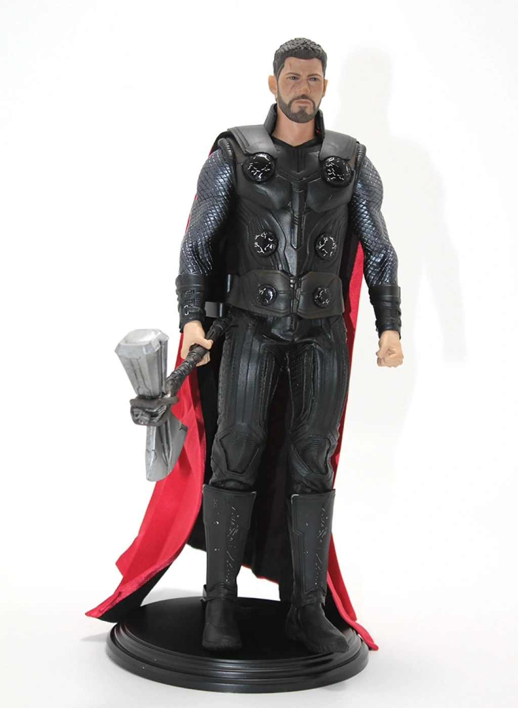 Infinity War Thor Figürü, Marvel Sinematik Evreni’nin en epik sahnelerinden biri olan Avengers: Infinity War filminde yer alan Thor karakterini güçlü ve karizmatik duruşuyla yansıtan özel bir koleksiyon figürüdür. Filmdeki zırh detayları, kaslı vücut yapısı, yüz ifadesi ve ikonik pelerini özenle modellenmiş olup, figür genelinde yüksek seviye işçilik dikkat çeker. Elinde yer alan balta detayı ve savaş pozisyonu, Thor’un Infinity War’daki güçlü halini birebir yansıtarak koleksiyon değerini artırır. Dayanıklı ve kaliteli polyester malzemeden üretilmiş olması sayesinde uzun süre formunu korur ve renk solması yapmadan sergilenebilir. Sağlam tabanı sayesinde dengeli bir duruş sunar ve vitrin, raf veya masa üstü sergilemeler için uygundur. Infinity War Thor Figürü, Marvel hayranları, Avengers koleksiyoncuları ve dekoratif figür arayanlar için hem görsel hem de tematik açıdan oldukça etkileyici bir seçenektir. Ev, ofis veya koleksiyon alanlarında dikkat çekici bir atmosfer oluşturur ve özel tasarımıyla öne çıkar.Paket İçeriği1 adet Infinity War Thor Figürü