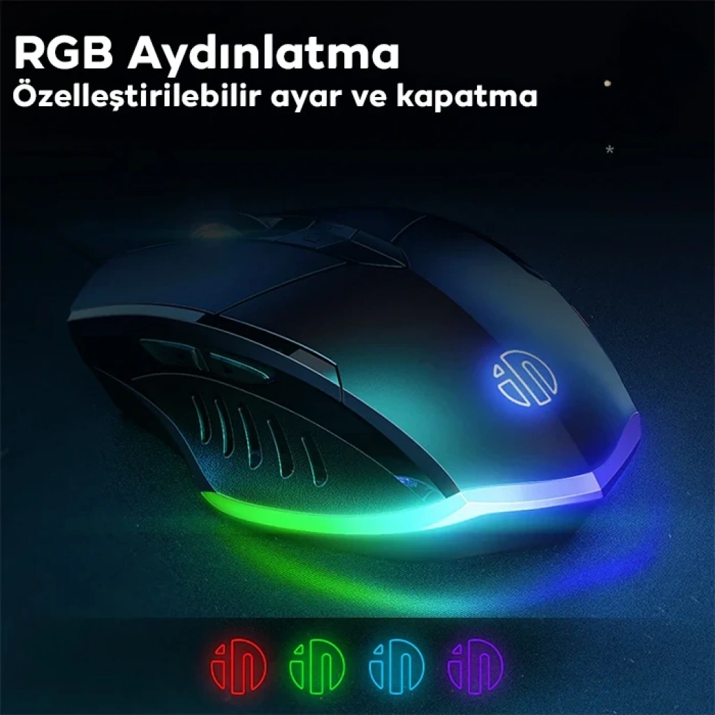İNPHİC W1 Sessiz Tıklama Özellikli Ergonomik Kablolu Oyun Mouse Fare 1200/7200DPI