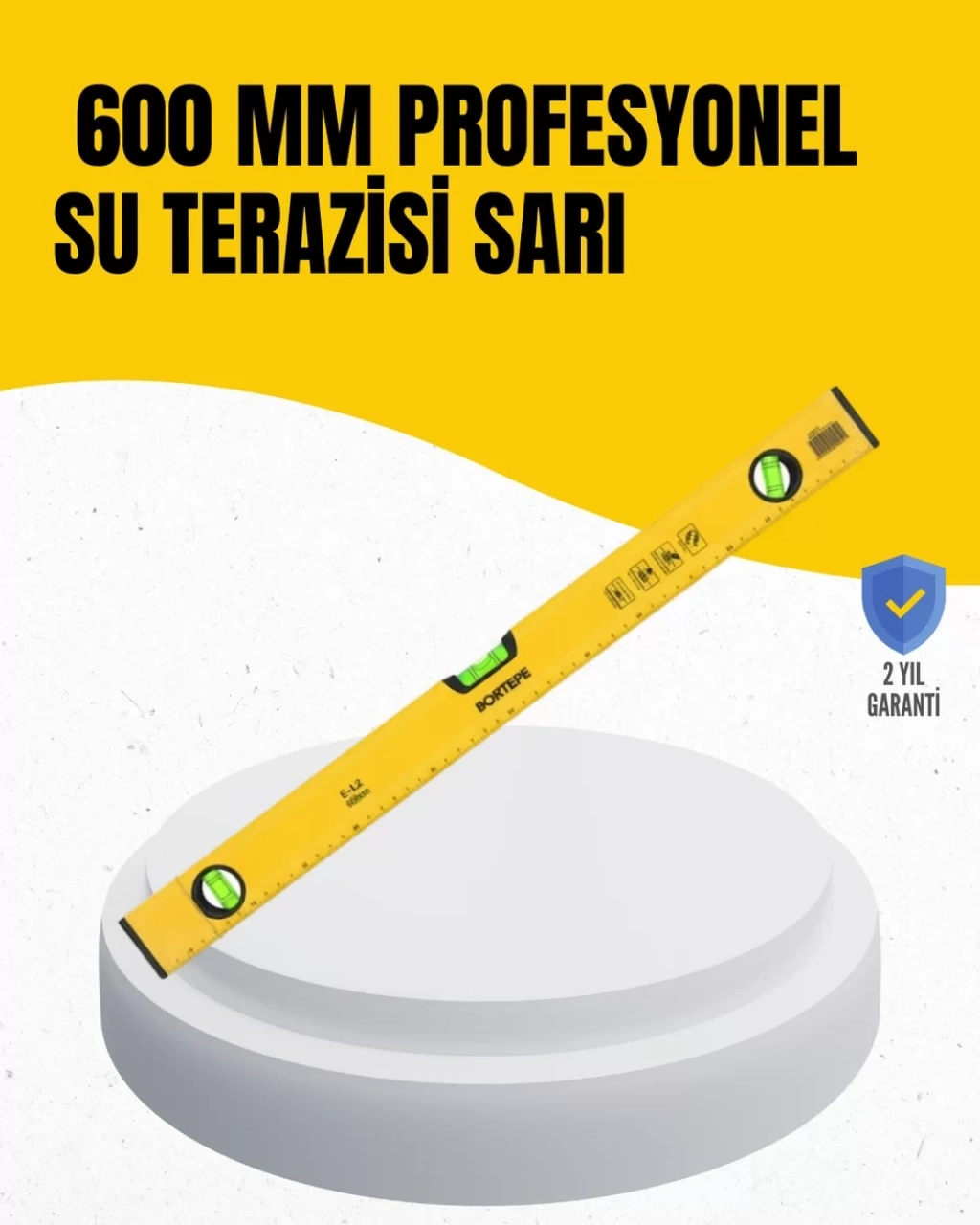 Bu 600 mm su terazisi, düzgün ve hassas ölçüm gerektiren tüm işler için ideal bir çözümdür. Sarı gövde rengi sayesinde çalışma alanında kolay fark edilir ve pratik kullanım sunar. Net okunan libella göstergeleri, hizalama işlemlerini zahmetsiz hale getirir.Evde yapılan tadilat ve montaj işlerinde, duvar rafı ve dolap kurulumlarında güvenilir sonuçlar verir. Aynı zamanda profesyonel inşaat ve dekorasyon çalışmalarında da rahatlıkla kullanılabilir. 600 mm uzunluğu, geniş yüzeylerde stabil ölçüm sağlar.Dayanıklı plastik yapısı, uzun süreli kullanıma uygundur. Hafif olması sayesinde taşıması kolaydır ve farklı alanlarda rahatlıkla kullanılabilir. Bakım gerektirmeyen yapısı, kullanım konforunu artırır.