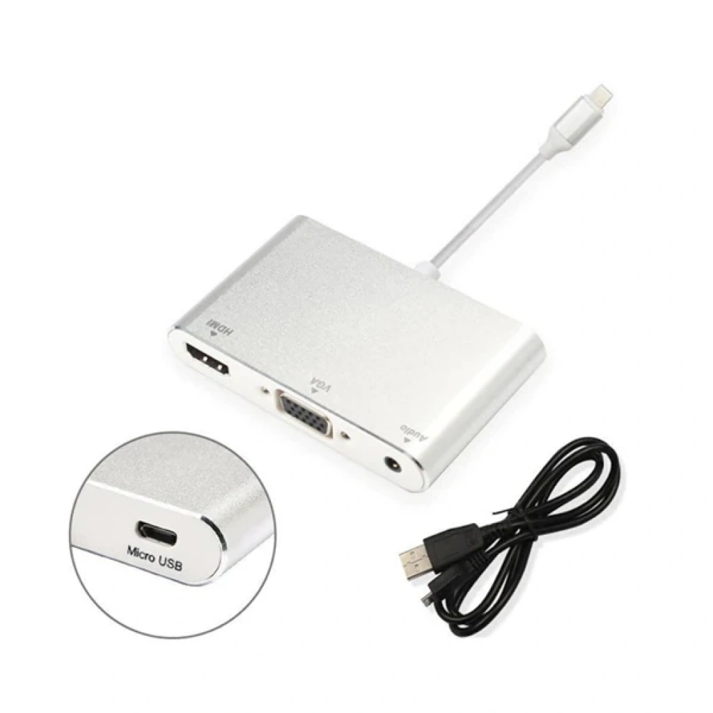 Apple Lightning to HDMI + VGA + Audio dönüştürücü adaptör 1080p full hd çözünürlük destekler.