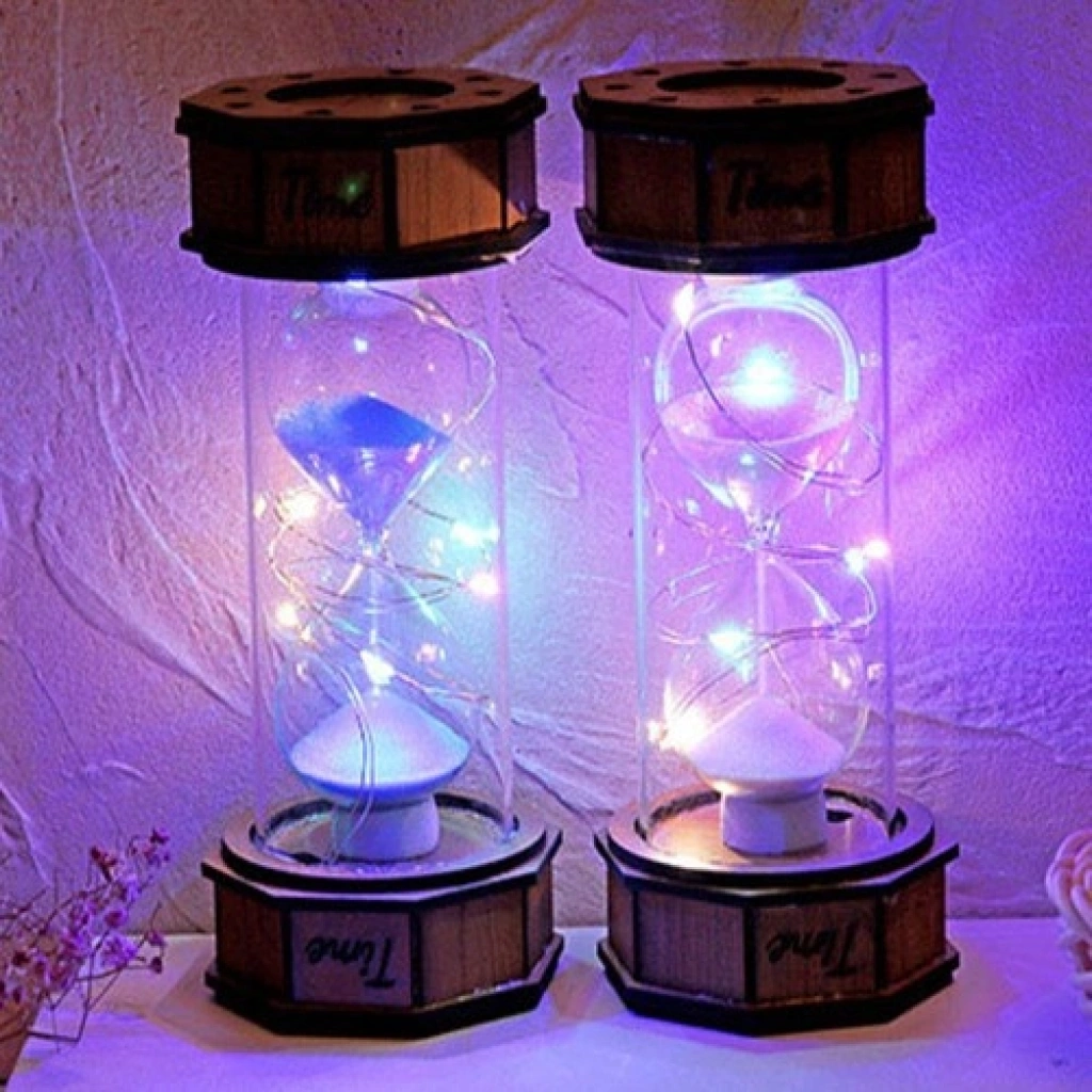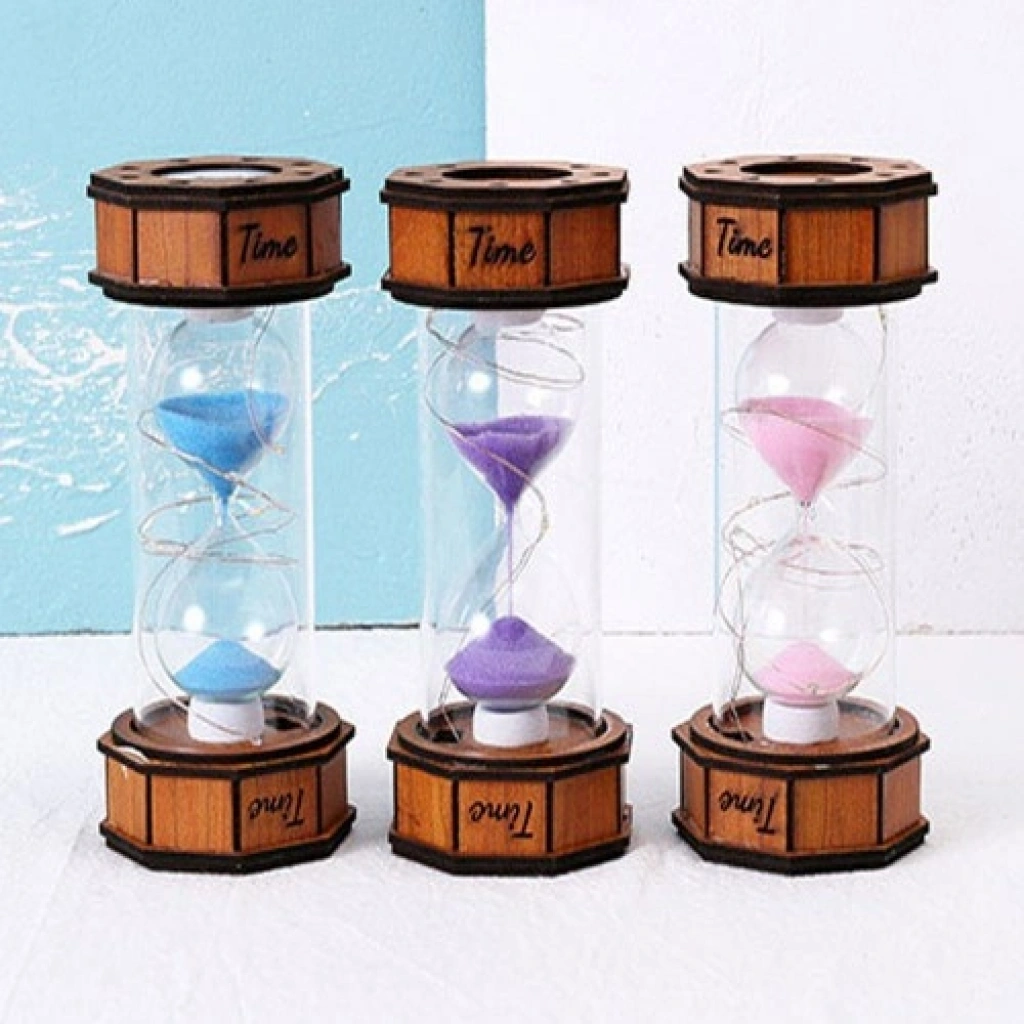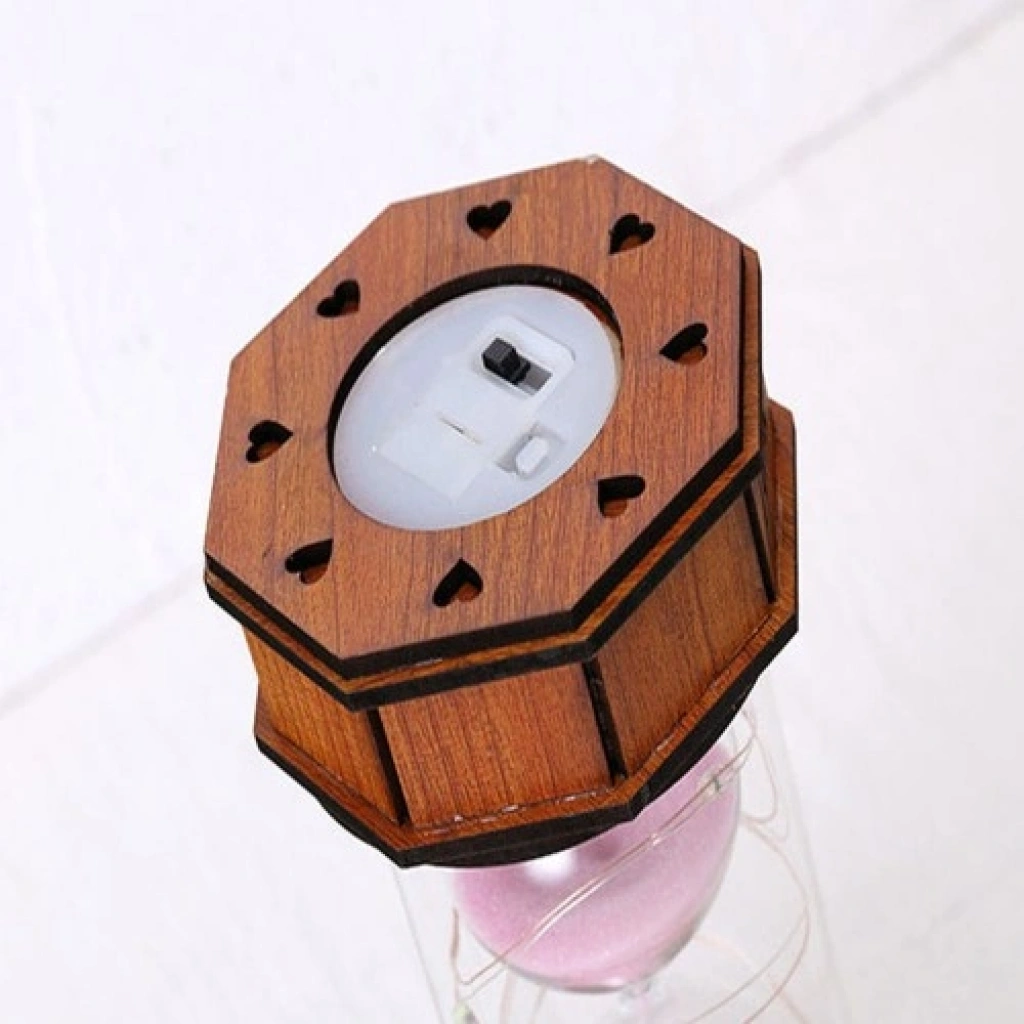 Ahşap ve cam malzemeden üretilmiştir. 3 adet mini saat pili ile çalışır (piller pakete dahildir). Alt kısmında açma/kapama düğmesi vardır. Ürün karışık renklerde gönderilmektedir. Ürün Ölçüsü: 14.5 cm x 7 cm