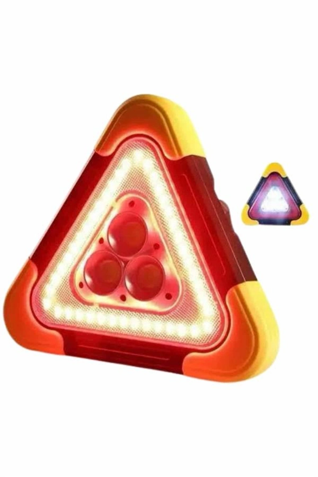 VipMarketim Işıklı İkaz Lambası Reflektör Şarjlı Işıklı Üçgen LED Acil Durum Feneri