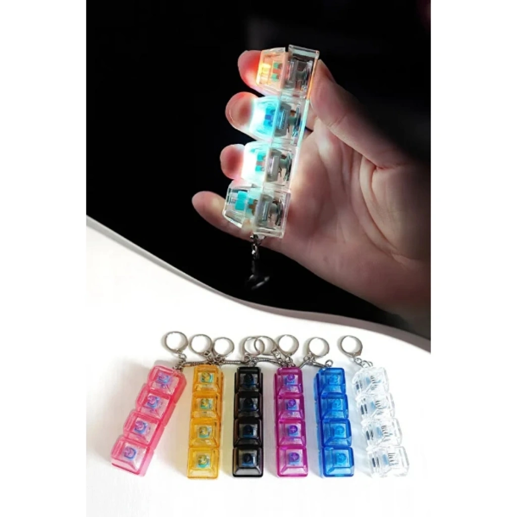 Işıklı Klavye Tuşu Switch Anahtarlık, mekanik klavye tuş hissini mini boyutta sunan eğlenceli ve dikkat çekici bir aksesuardır. Basıldığında ışık efekti veren tasarımı sayesinde hem görsel hem de dokunsal bir deneyim sunar. Mini formdaki switch tuş mekanizması sayesinde tıklama hissi verir ve gün içinde elde oynanabilen bir fidget stres oyuncağı anahtarlık olarak kullanılabilir. Şeffaf gövde yapısı ile iç mekanizma detayları görülebilir ve ışıklı tasarımı ile karanlık ortamlarda dikkat çekici bir görünüm sağlar. Anahtarlık halkası sayesinde çanta, anahtar veya aksesuar olarak rahatlıkla taşınabilir. Ürün karışık renklerde gönderilir; renk tercihi yapılamaz. Ürün Teknik Özellikleri Özellik Açıklama Ürün Adı Işıklı Klavye Tuşu Switch Anahtarlık Tasarım Mekanik klavye tuşu formu Özellik Basınca duyarlı ışık efekti Kullanım Fidget stres oyuncağı ve anahtarlık Renk Karışık renklerde gönderilir Paket İçeriği1 adet Işıklı Klavye Tuşu Switch Anahtarlık