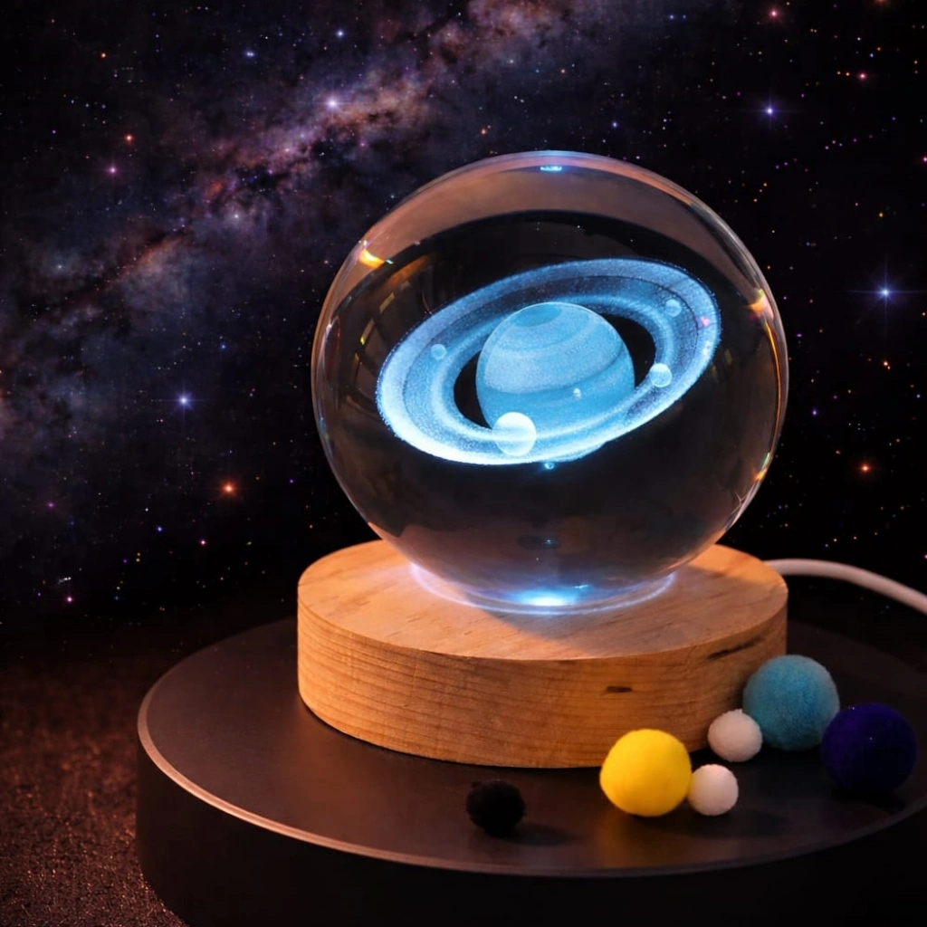 Uzayın sonsuz derinliğini ve Satürn'ün eşsiz halkalarını masanıza taşıyın! Satürn Gezegen Tasarımlı Işıklı Kristal Cam Küre ve Anahtarlık Seti, astronomi tutkunları ve modern dekorasyon sevenler için büyüleyici bir hediye seçeneğidir. Setin ana parçası olan 6 cm çapındaki küre, yüksek kaliteli kristal cam malzemeden üretilmiştir. İçerisine lazerle titizlikle işlenmiş olan halkalı Satürn figürü, doğal ahşap altlığın içindeki LED mekanizmasıyla buluştuğunda odanızda galaktik bir atmosfer yaratır. USB ile çalışan bu dekoratif küre, renk değiştirerek yanma özelliği sayesinde karanlıkta adeta parlayan bir gezegene dönüşür. Setin tamamlayıcısı olan 10 cm boyundaki kristal anahtarlık ise çevrildiğinde aktif olan renk değiştirme özelliği ve pilli yapısıyla bu evrensel tasarımı her an yanınızda taşımanıza imkan sağlar. Ürün Teknik Özellikleri ÖzellikIşıklı Kristal Cam KüreIşıklı Kristal Anahtarlık Boyutlar6 cm Çap (Küre) / 7 cm (Altlık)10 cm (Toplam Boy) MalzemeYüksek Kaliteli Kristal Cam & Doğal AhşapDayanıklı Kristal Cam & Metal Zincir Güç KaynağıUSB Bağlantılı (Kablo Dahildir)Dahili Pil (Piller Pakete Dahildir) Işık ÖzelliğiÇok Renkli (RGB) Geçişli LEDRenk Değiştiren LED (Çevir-Yak Mekanizma) TasarımLazer İşleme Satürn Gezegen MotifiSekizgen Kesim Kristal Form & Lazer İşleme Kullanım AlanıGece Lambası, Masa Dekoru, HediyeÇanta Aksesuarı, Anahtarlık, Hatıra Paket İçeriği1 Adet Işıklı Satürn Gezegen Tasarımlı Cam Küre Ve Kristal Anahtarlık Hediye Seti