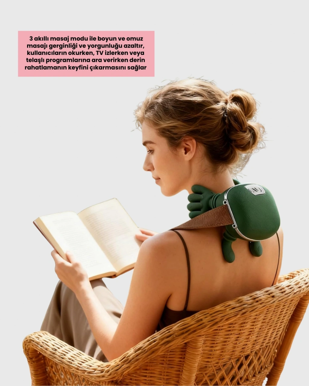 -Boyun ve omuz bölgesinde biriken gerginliği azaltmaya yardımcı olacak şekilde tasarlanmıştır-Günlük yaşamda stres, uzun süre masa başında çalışma ve duruş bozukluklarının yol açtığı kas sertliğini hafifletmeyi hedefler-3 farklı akıllı masaj modu sayesinde farklı ihtiyaçlara uygun masaj deneyimi sunar-Okurken, televizyon izlerken veya gün içinde kısa molalar verirken rahatlıkla kullanılabilir-Derin rahatlama hissi sağlayarak zihinsel ve fiziksel gevşemeyi destekler-Yenilikçi ısıtma teknolojisi sayesinde kasların daha hızlı gevşemesine yardımcı olur-Isı desteği, özellikle soğuk havalarda kas tutulmalarını azaltmaya katkı sağlar-Farklı yoğunluk seviyeleri ile kişisel tercihlere göre ayarlanabilir-Boyun ve omuz kaslarını nazik ama etkili şekilde uyarır-Günlük kullanım için uygundur ve düzenli kullanımda rahatlama hissini destekler-Ergonomik tasarımı sayesinde boyun bölgesine doğal şekilde oturur-Hassas sıcaklık ayarı ile konforlu bir masaj deneyimi sunar-Evde, ofiste veya dinlenme anlarında kullanılabilir-Kullanıcı dostu kontrol yapısı sayesinde kolayca ayarlanabilir-Yoğun tempolu yaşamda kısa sürede gevşeme imkânı sağlar-Kas yorgunluğunu azaltmaya yardımcı olur-Gün sonunda rahatlama rutininin bir parçası olarak tercih edilebilir-Boyun ve omuz bölgesinde sıcaklık ve masajı bir arada sunar-Uzun süreli oturma sonrası rahatlama ihtiyacına pratik çözüm sunar
