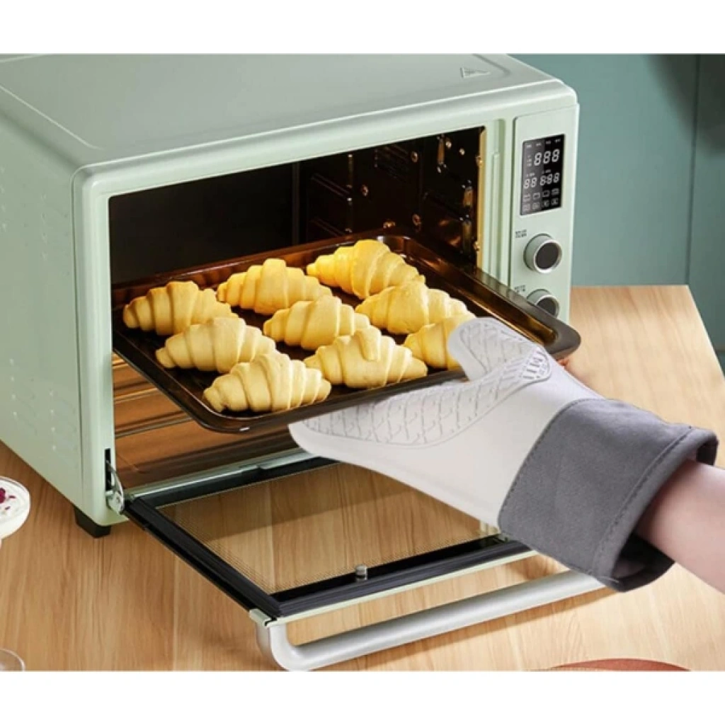 Isıya dayanıklı silikon fırın eldiveni, mutfakta fırın, ocak veya ızgara gibi yüksek sıcaklıklara maruz kalınan alanlarda ellerinizi korur. Kaymaz silikon dış yüzeyi, tencere, tepsi gibi kaygan yüzeyleri güvenle tutmanızı sağlar. Eldivenin aramid fiber malzemesi, ekstra ısıya dayanıklılık sağlar ve yanmaz özelliklidir. Yumuşak pamuk iç astar, kullanım sırasında konforlu ve yumuşak bir his sunar. Eldiven, 250°C (482°F) ve üzerindeki sıcaklıklara kadar koruma sağlar ve hem sağ hem sol elde kullanılabilir. Profesyonel mutfaklarda ve evde güvenle kullanılabilir. Paket İçeriği1 Adet Isıya Dayanıklı Silikon Fırın Eldiveni