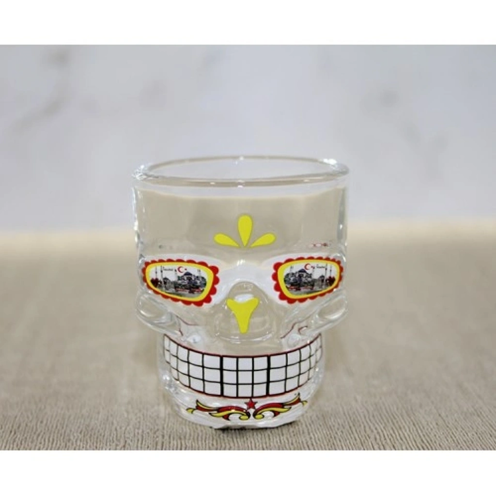 İSTANBUL TEMALI CAM KURUKAFA SHOT BARDAKİstanbul temalı cam kurukafa shot bardak, şehrin tarihi ruhunu modern ve sıra dışı bir tasarımla birleştiren özgün bir aksesuardır. Klasik shot bardaklarından farklı olarak kurukafa formunda şekillendirilen bu cam bardak, üzerinde yer alan İstanbul simgeleriyle hem kültürel hem de estetik bir değer sunar. Yüksek kaliteli cam yapısı ve detaylı figür işlemeleri sayesinde sunumlarınıza fark katarken, koleksiyonunuzun en dikkat çekici parçalarından biri olmaya adaydır.Öne Çıkan ÖzelliklerBenzersiz Kurukafa Formu: İkonik kurukafa (skull) tasarımıyla masanızda veya vitrininizde marjinal ve şık bir görünüm oluşturur.İstanbul Silüeti Detayları: İstanbul’un dünyaca ünlü sembollerini içeren baskılarıyla, şehre olan sevginizi estetik bir biçimde yansıtır.Yüksek Kaliteli Cam Materyal: Şeffaf ve dayanıklı cam malzemeden üretilmiştir; çatlamalara karşı dirençli yapısıyla uzun ömürlü kullanım sağlar.Çok Amaçlı Kullanım: Sadece içecek sunumları için değil, aynı zamanda ofis veya ev dekorasyonunda kalemlik veya mini obje sergileyici olarak da kullanılabilir.Koleksiyonluk Parça: Farklı ve özgün tasarım bardak biriktirenler için kaçırılmayacak, tematik bir üründür.Kalıcı Bir Hatıra: İstanbul seyahati sonrası kendinize alabileceğiniz en orijinal anılardan biri veya sevdikleriniz için etkileyici bir hediyedir.Teknik Özellikler TablosuÖzellikDetayÜrün TipiTasarımlı Cam Shot BardakFormKurukafa (Skull) FigürlüTemaİstanbul Şehir SimgeleriMalzemeYüksek Kalite Dayanıklı CamGörünümŞeffaf ve Estetik BaskılıKullanım AlanıSunum, Dekorasyon, Koleksiyon, HediyelikPaket İçeriği1 Adet İstanbul Temalı Cam Kurukafa Shot Bardak