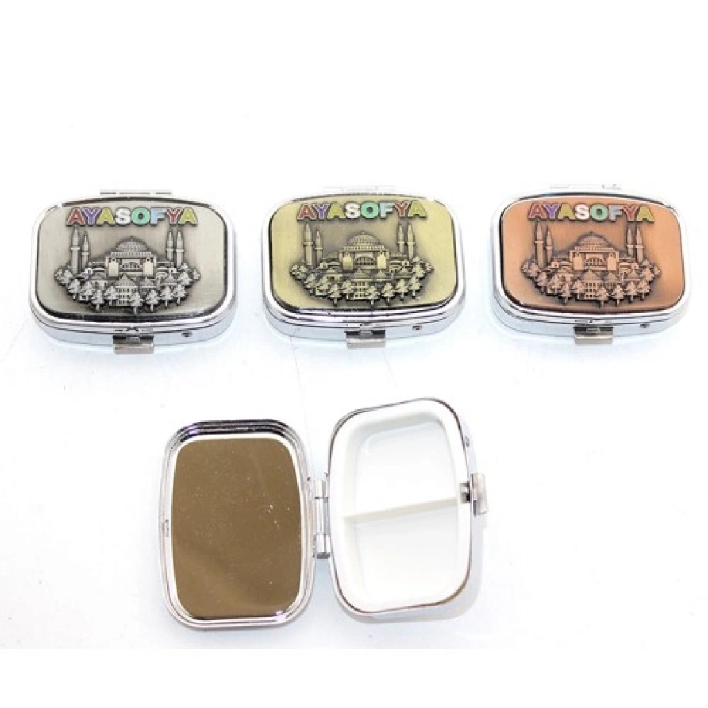 İSTANBUL TEMALI ENFİYE KUTUSU HAGİA SOPHİA (AYASOFYA) BASKILIAyasofya baskılı İstanbul temalı enfiye kutusu, tarihin en görkemli yapılarından biri olan Ayasofya’nın eşsiz silüetini günlük kullanımınıza taşıyor. 5,5 cm’lik kompakt boyutu ve dayanıklı metal gövdesiyle hem geleneksel enfiye kullanımı hem de küçük değerli eşyalarınızı saklamak için şık bir çözüm sunar. Üzerindeki detaylı baskı, İstanbul’un mistik atmosferini ve kültürel mirasını yansıtan estetik bir hatıra değeri taşır.Öne Çıkan Özelliklerİkonik Ayasofya Tasarımı: Hagia Sophia’nın mimari detaylarını yansıtan kaliteli baskısı ile geleneksel ve sanatsal bir görünüm sunar.Dayanıklı Metal Gövde: Darbelere karşı dirençli metal malzemeden üretilmiştir; kapağı güvenli bir şekilde kapanarak içeriği dış etkenlerden korur.Kompakt ve Fonksiyonel: 5,5 cm boyutuyla cepte veya çantada kolayca taşınabilir; enfiye dışında hap kutusu, nane şekeri kutusu veya takı saklama kabı olarak da kullanılabilir.Estetik Hatıra Eşyası: İstanbul seyahatlerinden kalıcı bir yadigar veya koleksiyonerler için otantik bir hediye seçeneğidir.Nostaljik Dokunuş: Geleneksel enfiye kültürünü modern ve şık bir sunumla birleştirir.Teknik Özellikler TablosuÖzellikDetayÜrün TipiMetal Enfiye ve Saklama KutusuBoyut5,5 cmMalzemeYüksek Kalite Metal AlaşımTemaHagia Sophia (Ayasofya) / İstanbulKullanım AmacıEnfiye Saklama, Hap Kutusu, Dekoratif ObjePaket İçeriği1 Adet Ayasofya Baskılı Enfiye Kutusu