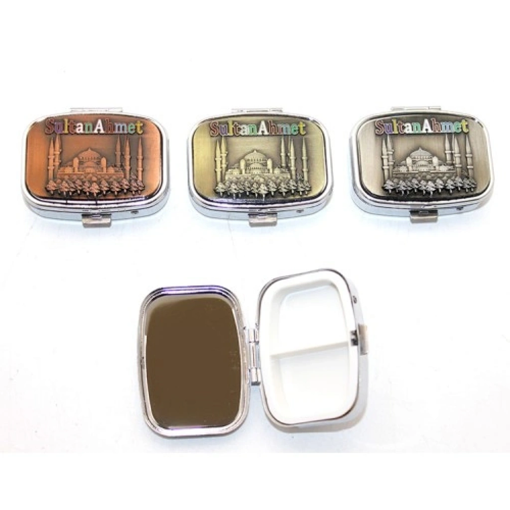 İSTANBUL TEMALI ENFİYE KUTUSU SULTANAHMET BASKILISultanahmet baskılı İstanbul temalı enfiye kutusu, dünyanın en ikonik yapılarından biri olan Sultanahmet Camii’nin (Mavi Camii) eşsiz zarafetini yanınızda taşımanızı sağlar. 5,5 cm’lik kompakt boyutu ve dayanıklı metal gövdesiyle hem geleneksel enfiye kullanımı hem de küçük değerli eşyalarınızı saklamak için ideal bir çözümdür. Üzerindeki detaylı baskı, İstanbul’un tarihi derinliğini ve mimari mirasını yansıtan estetik bir aksesuar niteliği taşır.Öne Çıkan Özelliklerİkonik Sultanahmet Tasarımı: Sultanahmet Camii’nin minarelerini ve kubbe yapısını yansıtan kaliteli baskısı ile geleneksel ve sanatsal bir görünüm sunar.Dayanıklı Metal Gövde: Darbelere karşı dirençli metal malzemeden üretilmiştir; kapağı güvenli bir şekilde kapanarak içeriği dış etkenlerden korur.Kompakt ve Fonksiyonel: 5,5 cm boyutuyla cepte veya çantada kolayca taşınabilir; enfiye dışında hap kutusu, nane şekeri kutusu veya küçük takı saklama kabı olarak da kullanılabilir.Estetik Hatıra Eşyası: İstanbul seyahatlerinden kalıcı bir yadigar veya koleksiyonerler için otantik ve nostaljik bir hediye seçeneğidir.Geleneksel Dokunuş: Tarihi dokuyu modern kullanım ihtiyaçlarıyla birleştirerek masanızda veya cebinizde şık bir duruş sergiler.Teknik Özellikler TablosuÖzellikDetayÜrün TipiMetal Enfiye ve Saklama KutusuBoyut5,5 cmMalzemeYüksek Kalite Metal AlaşımTemaSultanahmet Camii / İstanbulKullanım AmacıEnfiye Saklama, Hap Kutusu, Dekoratif ObjePaket İçeriği1 Adet Sultanahmet Baskılı Enfiye Kutusu