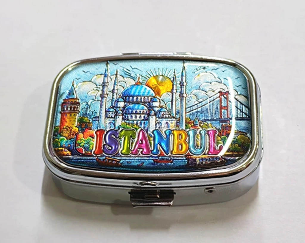 İstanbul temalı ilaç kutusu, canlı ve detaylı tasarımıyla günlük kullanımda hem işlevsel hem de estetik bir sağlık aksesuarı sunar. Üzerinde yer alan İstanbul teması sayesinde koleksiyonluk ve hediyelik eşya olarak da tercih edilen bu ürün, kompakt yapısı ile çanta içinde rahatlıkla taşınabilir. İç kısmında bulunan iki bölmeli ilaç kutusu tasarımı, farklı ilaçların düzenli ve karışmadan saklanmasına yardımcı olur. Dayanıklı gövdesi ve kapaklı yapısıyla ilaçların güvenli şekilde muhafaza edilmesini sağlayan bölmeli ilaç saklama kutusu, günlük kullanımın yanı sıra seyahatlerde de pratik bir çözüm sunar. Ürün Teknik Özellikleri Özellik Açıklama Ürün Adı İstanbul Temalı İlaç Kutusu Model 4 Ölçü Yaklaşık 5 x 5 cm Bölme Sayısı 2 bölmeli Tasarım İstanbul temalı kapak Kullanım Alanı Günlük kullanım, seyahat, çanta içi Paket İçeriği1 adet İstanbul Temalı İlaç Kutusu - Model 4