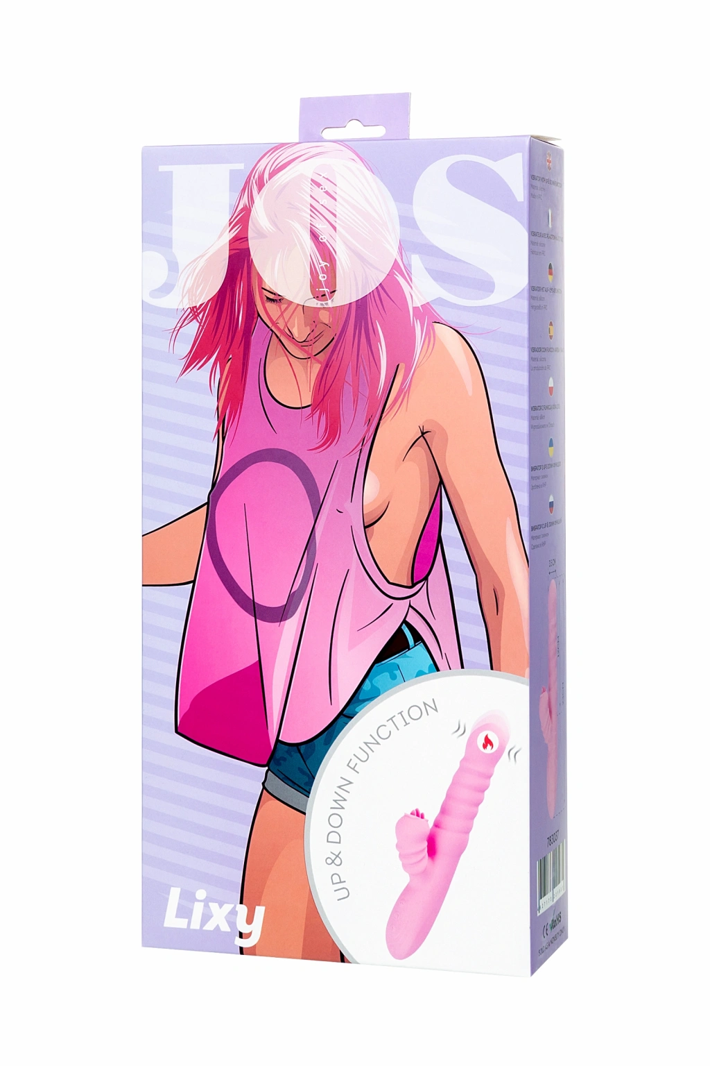 YUKARI VE AŞAĞI FONKSİYONLU LİXY VİBRATÖRJos'un çok işlevli Lixy orgazm kaynağı hizmetinizdedir! Eşsiz bir vibratör, birçok erdeme sahip klasik bir tavşan vibratörüdür. Lixy ile tanışın ve tüm erdemlerini takdir edin. **Etkileyici tasarım**Çıkıntıların ve kıvrımların yumuşak kıvrımları, vibratörün gövdesine sığar. Bükülmüş gövde, şehvetli teması ve samimi alanların uyarılmasından unutulmaz bir his vermeyi garanti eder.Çekici marshmallow-pembe renk, ayrı bir görsel ve hoş dokulu zevk türüdür. Yüksek kaliteli kadifemsi silikondan yapılmış olan Lixy'ye direnmek imkansızdır. **Sıcak ve yumuşak**Lixy, mümkün olduğunca gerçek ve rahat bir temas için bir ısıtma fonksiyonuna sahiptir. Lixy hislerinize dikkat edecek! **Çeşitli modlar**Lixy ile kendiniz için mükemmel titreşim mod kombinasyonunu bulmak zor olmayacaktır. İki güçlü motorda (vibratörün daldırma kısmında ve klitoral süreçte) 20 farklı Lixy çalışması seçeneği, çok sayıda canlı duyum ve birden fazla derin orgazm verecektir.