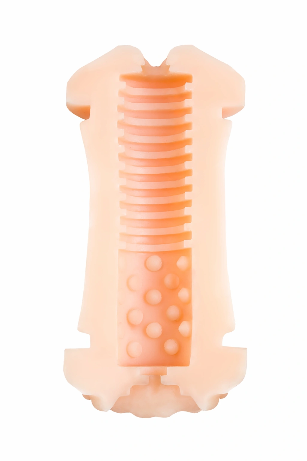 Bu ürün, bir kadınla yakınlıktan ve normal mastürbasyondan farklıdır! Patlayıcı orgazma yol açan tamamen farklı, zengin ve renkli duyumlar. İki yönlü masturbator bir seçenek sunar: anüs veya yumuşak dudaklar. Farklı iç kabartmalara ve giriş çaplarına sahiptirler. Rahat silikon silindir, kullanımda maksimum konforu garanti eder. * Kadifemsi malzeme.* Kaymaz silikon silindir.* Suda kullanılabilir.* Farklı iç araziye sahip iki giriş.