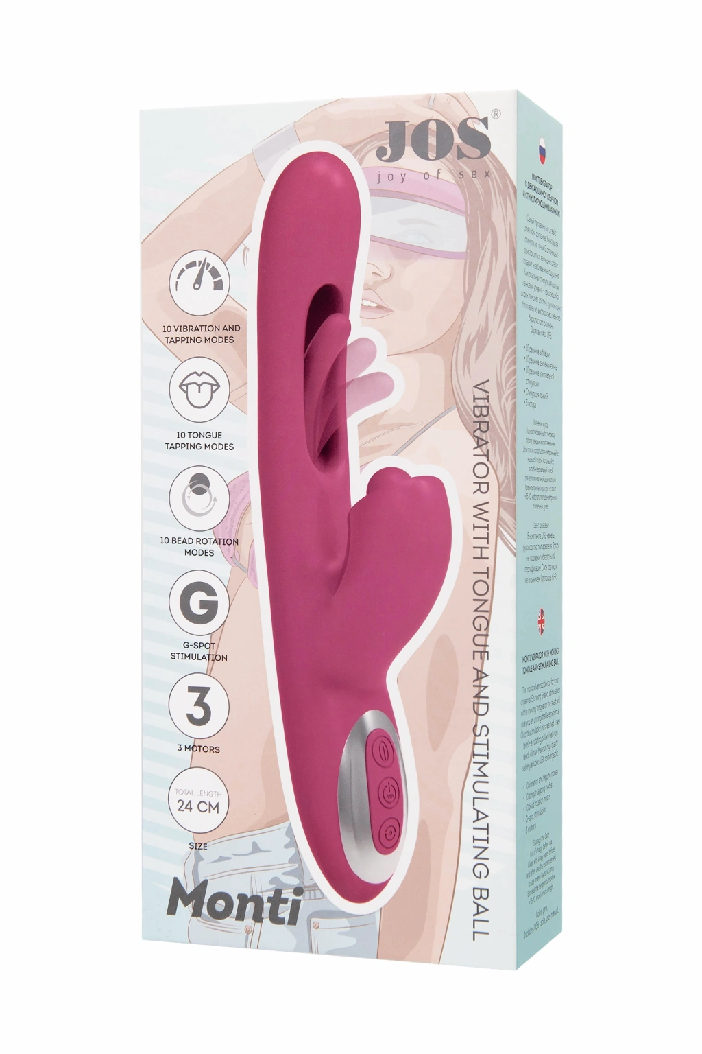 VipMarketim Jos Monti Hareketli Dilli Ve Titreşimli Top Başlıklı Vibratör, Silikon, Pembe, 24 Cm