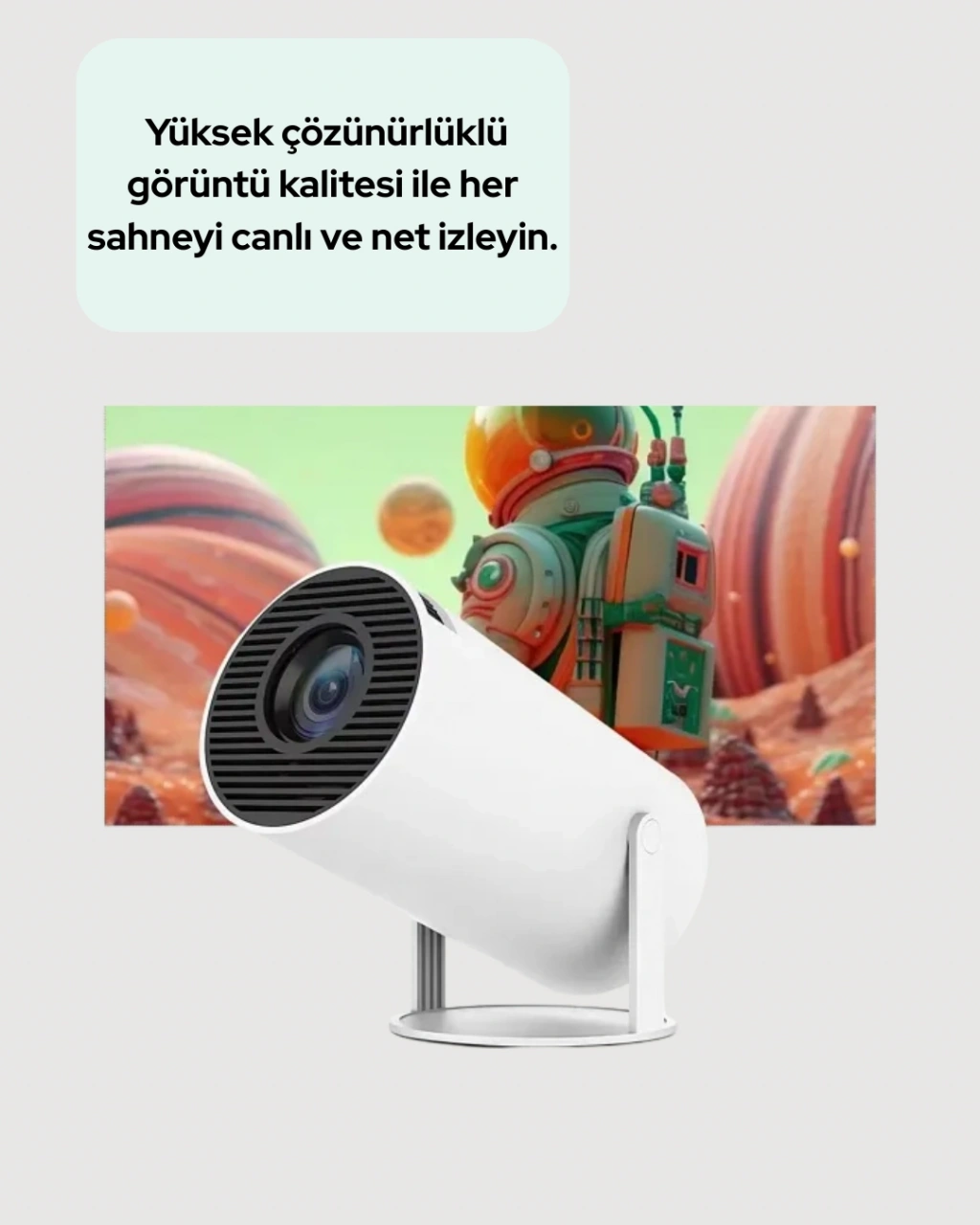Ultra Pro projeksiyon cihazı, Full HD çözünürlük ve 4K uyumluluk desteği ile yüksek kaliteli bir görüntü deneyimi sunar. 130 inç geniş ekran desteği sayesinde filmler, diziler, spor karşılaşmaları ve sunumlar net bir şekilde görüntülenir. 160 ANSI lümen parlaklık değeri, hem aydınlık hem de karanlık ortamlarda tatmin edici bir görüntü sağlar. Kablosuz bağlantı özelliği, telefon, tablet veya bilgisayardan içeriklerin kolayca aktarılmasına imkân tanır. HDMI ve USB girişleri sayesinde farklı cihazlarla uyumlu çalışır. 5000 saatlik ampul ömrü uzun süreli kullanım sağlar.