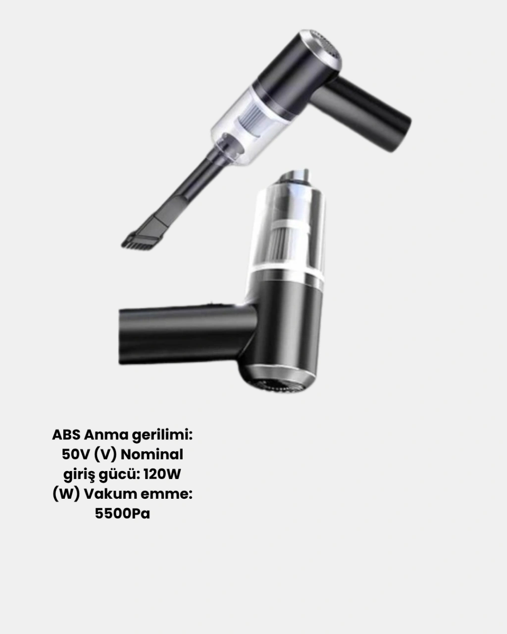 Bu mini araç süpürgesi, güçlü 120W motoru ile 5500PA seviyesinde emiş gücü sunarak derinlemesine temizlik sağlar. Koltuk araları, paspaslar, bagaj ve zemin kısımlarındaki tüm toz ve kirleri zahmetsizce temizler. Hem kuru hem de hafif nemli yüzeylerde kullanılabilir.Taşınabilir ve kablosuz yapısı sayesinde priz arama derdine son verir. USB şarj kablosu ile kolayca şarj edilir ve uzun pil ömrü sayesinde kesintisiz temizlik sağlar. Katlanabilir sapı, saklama kolaylığı sunarken araç içinde minimum yer kaplar.Yıkanabilir filtresi sayesinde uzun ömürlü ve çevre dostu bir kullanım sunar. Sadece suyla durulayıp kurutmanız yeterlidir. Ergonomik tutma kolu, elinizi yormadan uzun süreli kullanım sağlar. 50V gerilim ve 120W güçle çalışan bu mini süpürge, günlük kullanımda maksimum performans sunmak için tasarlandı. Araç, ofis ve ev kullanımına uygundur.