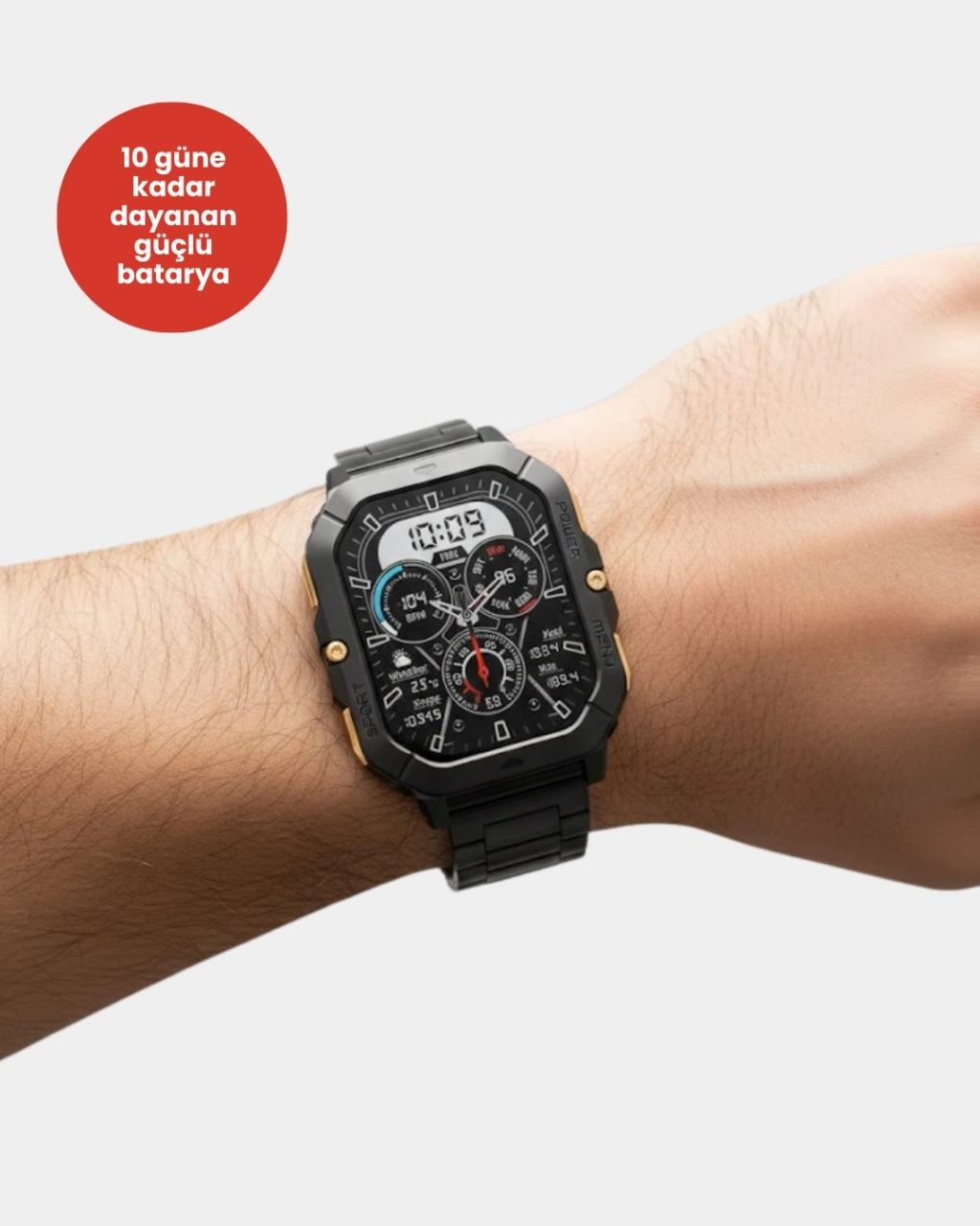 Bu akıllı saat, uzun pil ömrü ve kablosuz şarj teknolojisi ile kesintisiz kullanım avantajı sunar. Tek şarjla günlerce kullanılabilen bataryası, yoğun tempoda bile yüksek performans sağlar. AMOLED ekranı sayesinde hem iç hem dış mekânlarda net görüntü sunar.3 farklı kordon seçeneği ile tarzınızı dilediğiniz gibi değiştirebilirsiniz. Spor, klasik veya günlük kombinlerle kolayca uyum sağlar. Ultra ince ve hafif gövdesi, gün boyu rahatsızlık vermeden kullanım imkânı sunar.Şıklık ve teknolojiyi bir arada isteyen kullanıcılar için tasarlanmıştır.