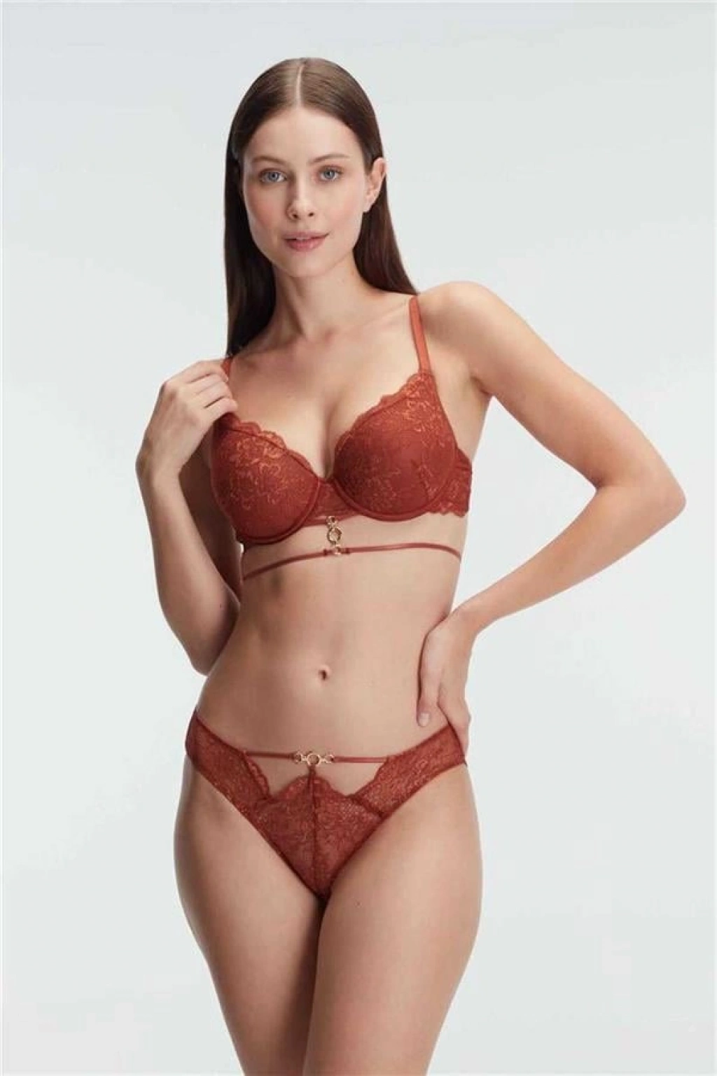 VipMarketim Kadın Balenli Destekli Dolgulu Göbek Detaylı Dantelli Sütyen Ve Slip Takım ( ) (Kod:4832)