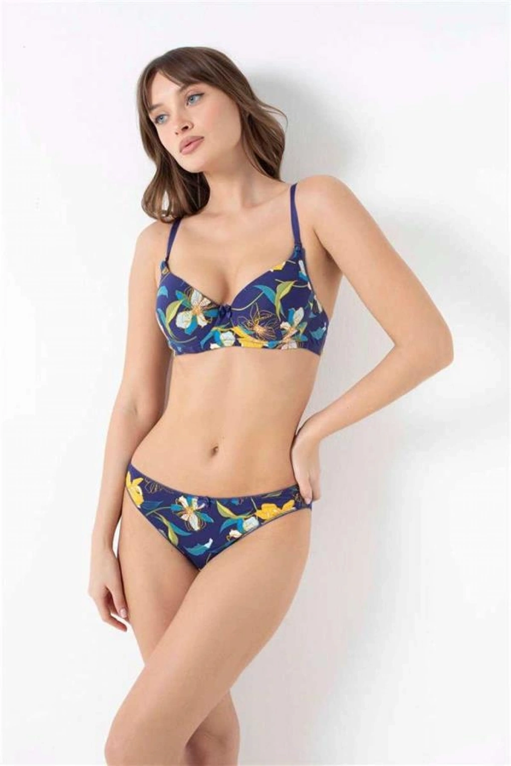 VipMarketim Kadın Viskon Balenli Destekli Dolgulu Çiçek Baskılı Sütyen Ve Slip Takım ( ) (Kod:4243)