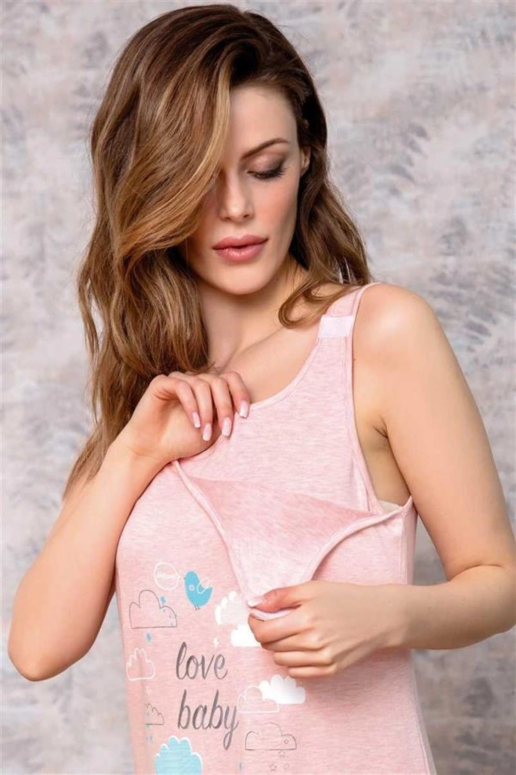 VipMarketim Kadın Viskon Hamile Lohusa Baskılı Önden Açılan Emzirme Pullu Askılı Kısa Gecelik ( ) (Kod:5509)
