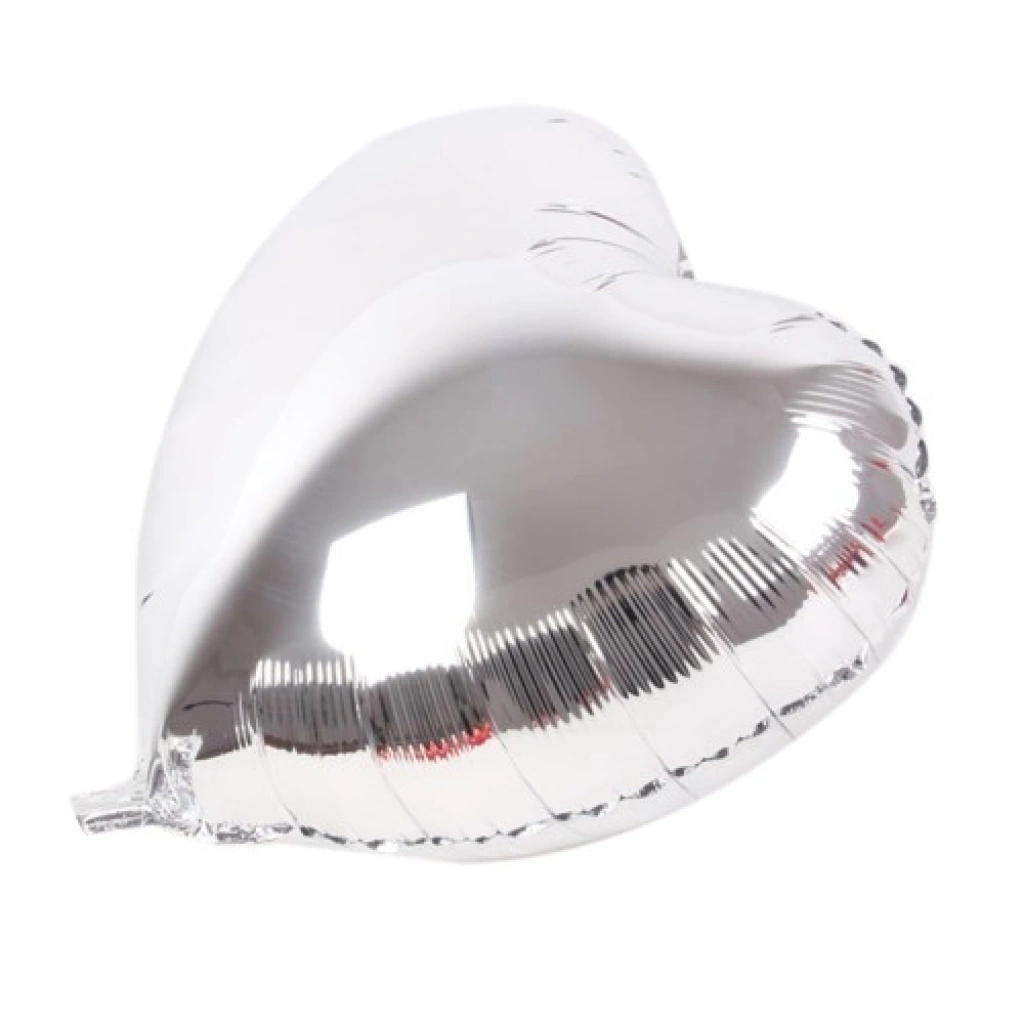 Şekil: Kalp Renk: Gümüş Ölçü: 45 cm / 18 inç Malzeme: Folyo Şişirme: Pompa veya helyum ile uyumlu Özel gün süslemelerinde zarif bir dokunuş katmak isteyenler için ideal bir dekoratif balondur.