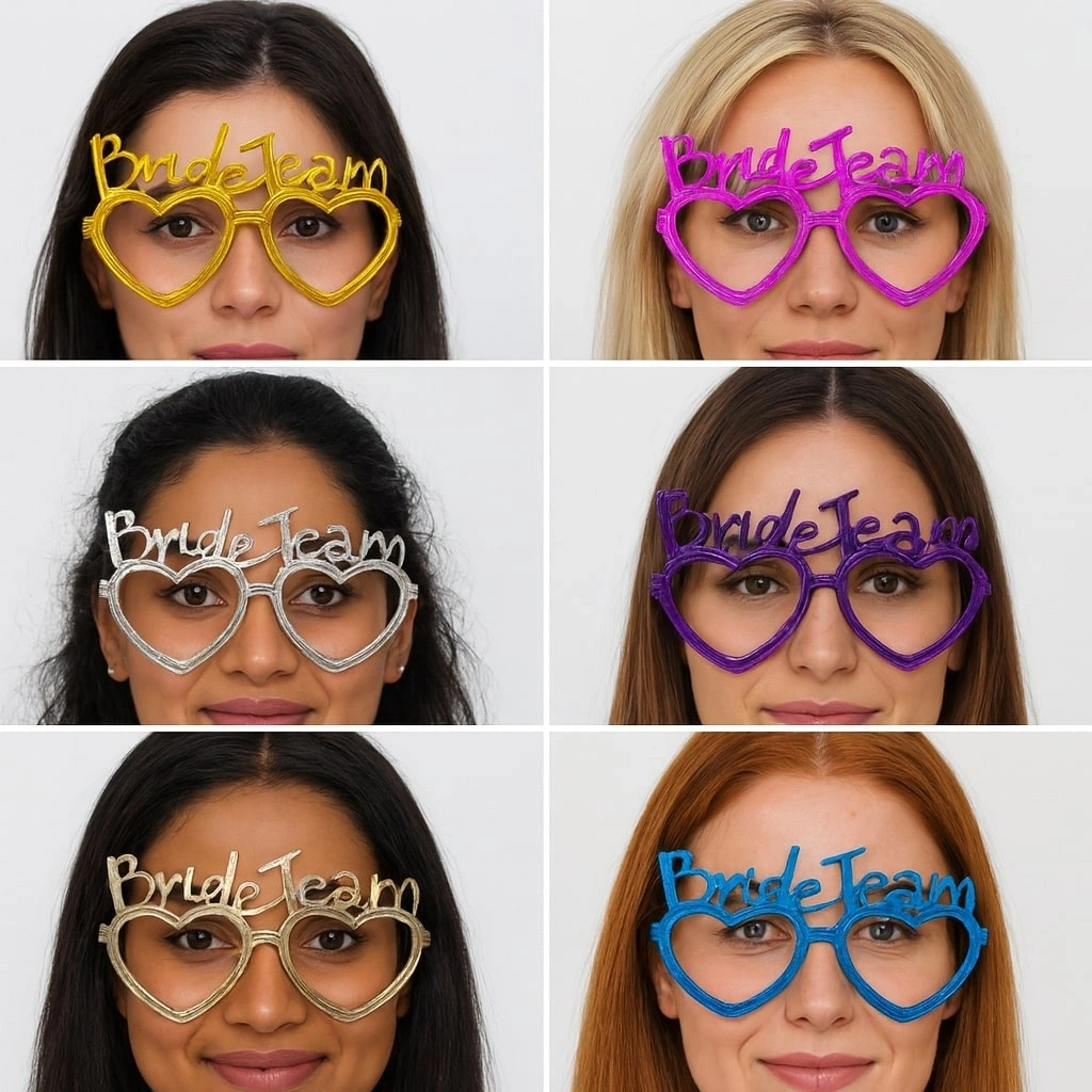 Bekarlığa veda partileri ve düğün öncesi kutlamalar için özel tasarlanmış bu Kalpli Bride Team Gözlük Seti, altı farklı rengi ile eğlencenizi renklendirir. Gözlüklerin üst kısmında yer alan "Bride Team" yazısı ve kalp şeklindeki çerçeve tasarımı ile dikkat çeker. Hafif plastik malzemeden üretilen gözlükler, uzun süreli kullanımda rahatlık sağlar. Parti konseptinizi tamamlayacak şık ve eğlenceli bir aksesuardır. Paket İçeriği6 Adet Kalpli Bride Team Parti Gözlüğü