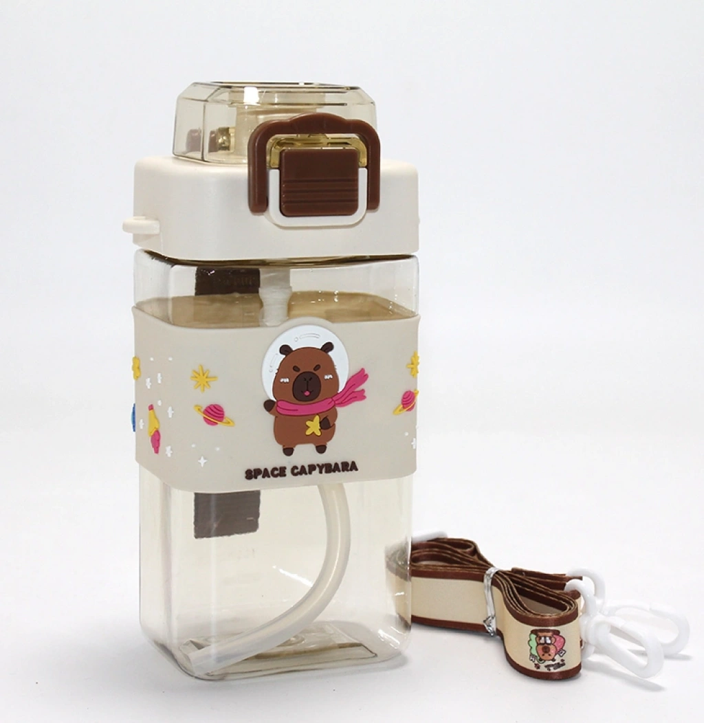 Çocukların yeni nesil favorisi Kapibara, şimdi en şık matara tasarımıyla yanınızda! Kapibara Desenli Pipetli Çocuk Matarası, 19x8 cm boyutlarındaki karemsi formu ve ergonomik detaylarıyla okulda, sporda ve gezilerde çocukların su içme alışkanlığını eğlenceye dönüştürür. Gövdesinde yer alan özel dokulu silikon kılıf, hem darbelere karşı ekstra koruma sağlar hem de ıslak ellerle bile kaymayan güvenli bir tutuş sunar. BPA içermeyen, şeffaf ve yüksek kaliteli gövdesi sayesinde içecek seviyesi kolayca görülebilir. Tek tuşla açılan kilitli kapak mekanizması, sızdırmazlık garantisi verirken yumuşak silikon pipeti ile hijyenik ve kolay bir içim sunar. Paket içeriğine dahil olan ayarlanabilir omuz askısı, hareket halindeki çocuklar için taşıma konforunu maksimize eder. Modern kahve ve krem tonlarındaki tasarımıyla hem çok şık hem de son derece dayanıklıdır. Ürün Teknik Özellikleri ÖzellikAçıklama Boyutlar19 cm (Yükseklik) x 8 cm (Genişlik) MalzemeSağlığa Zararlı Madde İçermeyen Kaliteli Gövde & Silikon Koruyucu TasarımKapibara Figürlü & Darbe Emici Silikon Kılıflı İçim TipiYumuşak Silikon Pipetli ve Emniyet Kilitli Kapak TaşımaAyarlanabilir ve Çıkarılabilir Yumuşak Dokulu Omuz Askısı Kullanım AvantajıSızdırmazlık Özelliği, Darbeye Dayanıklı Yapı Kullanım AlanıOkul, Kreş, Piknik ve Günlük Aktiviteler Paket İçeriği1 Adet Kapibara Desenli Çocuk Matarası
