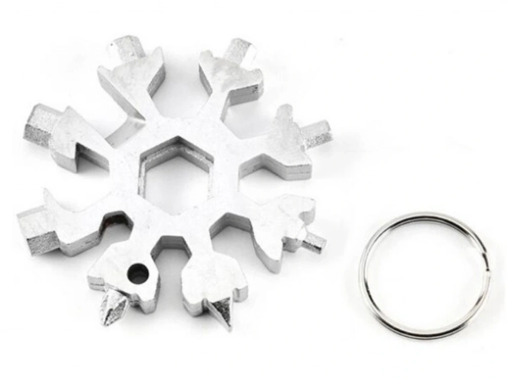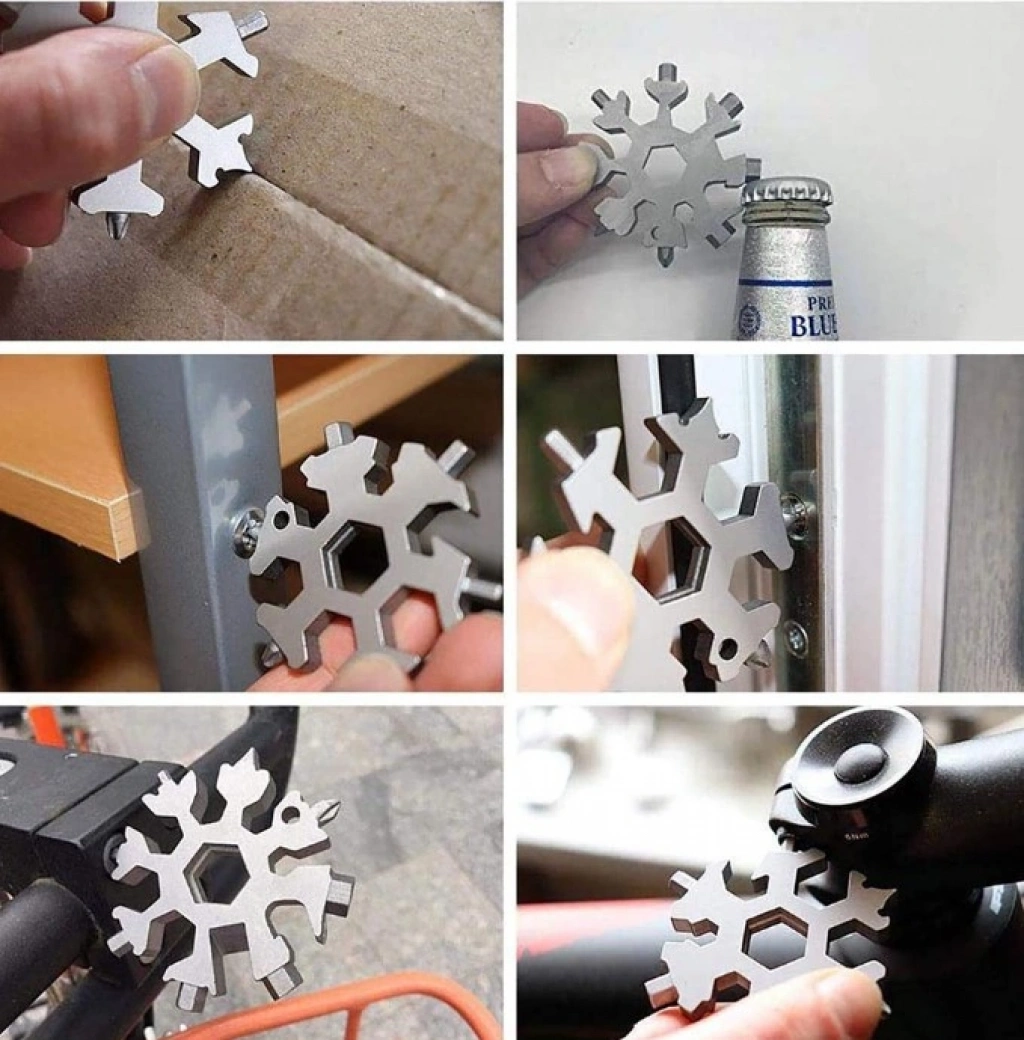 Kar tanesi anahtarları son derece çok yönlüdür. Şişe açacağı, kutu açacağı, tornavida, emniyet çekiç, altıgen anahtar vb. Olarak kullanılabilir.18+1 çeşit düz yıldız tornavida, alyan, civata anahtarı, meşrubat açacağı, koli kesme gibi bir çok işlerinizi tek ürünle çözebilirsiniz.Avuç içine sığan küçük boyutu ile cebinizde veya çantanızda kolaylıkla taşıyabilirsiniz.Paslanmaz çelikten üretilmiştir.Her evde, araçta ve özellikte bisiklette motosiklet gibi ulaşım araçlarında bulunması gereken müthiş bir ürün.Dağcılık veya yürüyüş gibi açık hava sporlarında yanınıza almalısınız. Paket İçeriği1 Adet Kar Tanesi Çok Amaçlı Anahtarlık Açacak