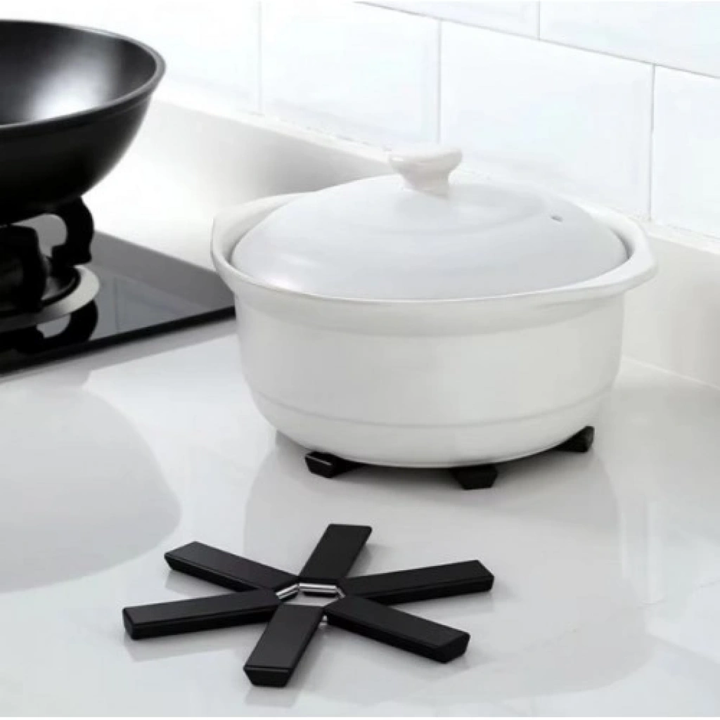 Katlanabilir nihale, mutfakta sıcak tencere, tava veya tepsilerinizi masa ya da tezgâhınıza zarar vermeden güvenle yerleştirmenizi sağlayan pratik ve şık bir aksesuardır. Katlanabilir tasarımı sayesinde kullanımı son derece kolaydır ve kullanılmadığında yer kaplamadan saklanabilir. Isıya dayanıklı plastik malzemeden üretilmiş olan bu nihale, sıcak eşyalar için güvenli bir alan sunar. Yapışmaz özelliği sayesinde kolayca temizlenebilir ve modern tasarımı ile her mutfak dekoruna uyum sağlar.Paket İçeriği1 Adet Katlanabilir Nihale