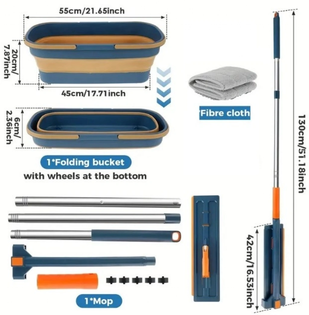 Kova Boyutları: 55 cm x 27 cm x 20 cm (tam açık), 6 cm yükseklik (katlanmış)Mop Uzunluğu: Maksimum 130 cmMalzeme: Dayanıklı plastik kova, paslanmaz çelik mop sapıKullanım Alanı: Fayans, parke, mermer gibi tüm zeminlerEk Özellikler: Tekerlekli kova, katlanabilir tasarım, mikrofiber bezPAKET İÇERİĞİ1 x Katlanabilir tekerlekli kova1 x Mikrofiber mop bezi1 x Ayarlanabilir mop sapı