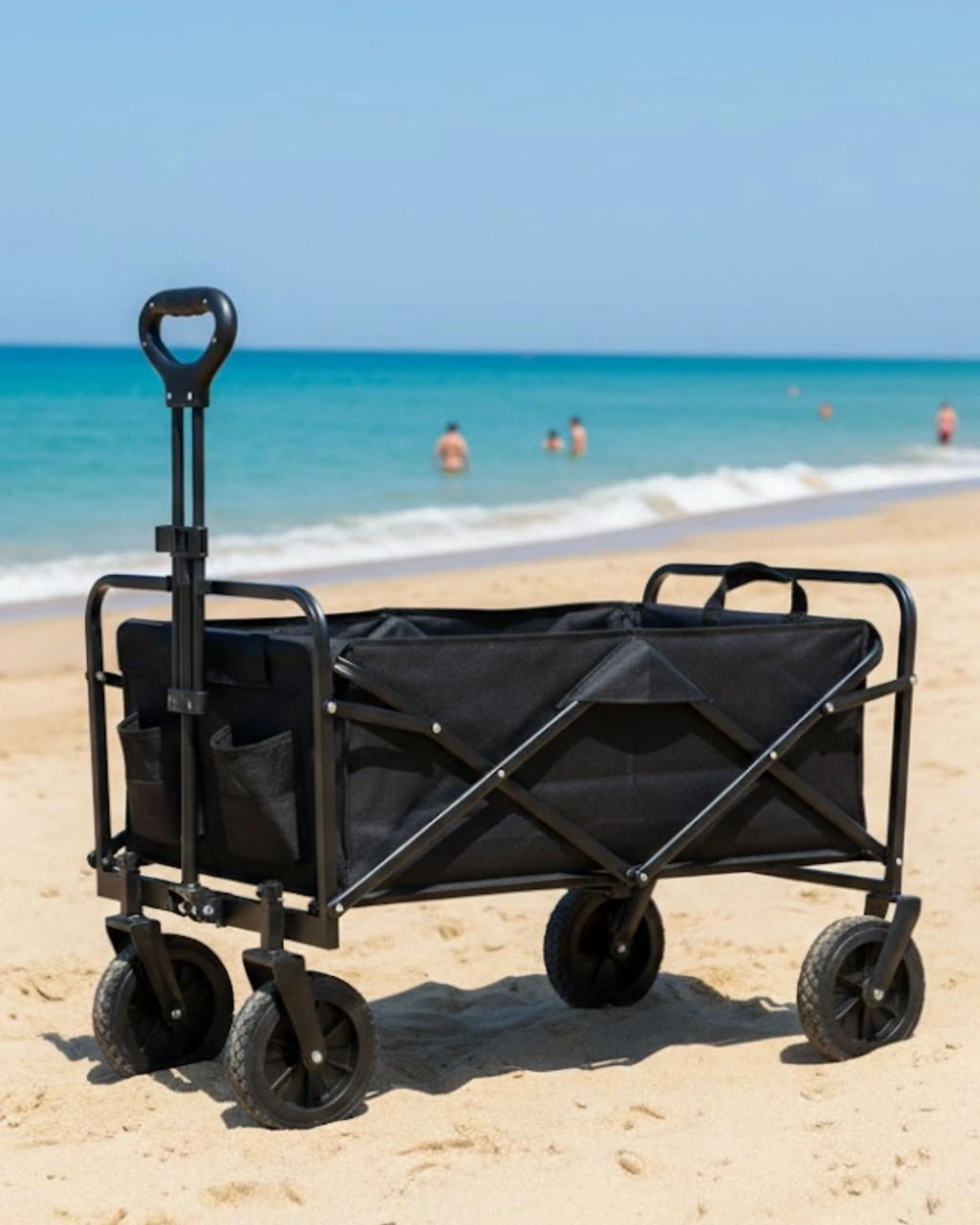 Katlanır Kamp ve Plaj Arabası, hem açık hava aktivitelerinde hem de günlük yaşamda taşıma işlerini kolaylaştırmak için geliştirilmiş fonksiyonel bir vagon modelidir. Kamp alanlarında, plajda, bahçede veya alışveriş sırasında eşyaları tek seferde ve düzenli biçimde taşıma imkânı sunar. Kullanıcıyı yormadan, pratik bir taşıma deneyimi sağlar.Ürünün öne çıkan en önemli özelliği katlanabilir yapısıdır. Kullanım sonrasında saniyeler içinde katlanarak oldukça kompakt bir boyuta gelir. Bu sayede araç bagajında, evde veya depo alanlarında rahatça saklanabilir. Kurulum veya sökme gerektirmeyen tasarımı, zaman kaybını ortadan kaldırır.74,8 kg’a kadar taşıma kapasitesi sayesinde ağır ve hacimli eşyalar için uygundur. Geniş iç alanı, kamp çantaları, soğutucular, bahçe ekipmanları veya market alışverişleri için yeterli alan sunar. Ek olarak bulunan yan cepler, küçük eşyaların düzenli şekilde taşınmasına yardımcı olur.360° dönebilen ön tekerlekler, her yönde kolay hareket imkânı sağlar. Kum, çakıl, çimen ve bozuk zeminlerde dengeli bir sürüş sunar. Bu özellik, özellikle plaj ve kamp alanlarında büyük avantaj sağlar.Ayarlanabilir kulp yapısı, farklı boylardaki kullanıcılar için konforlu bir kullanım sunar. Kilitlenebilir mekanizması sayesinde kontrol kaybı yaşanmaz. Sağlam çelik iskeleti ve dayanıklı kumaşı, uzun süreli kullanımlar için güven verir.Katlanır Kamp ve Plaj Arabası, çok yönlü kullanım imkânı, sağlam yapısı ve pratik tasarımıyla taşıma ihtiyaçlarını zahmetsiz hale getirir.