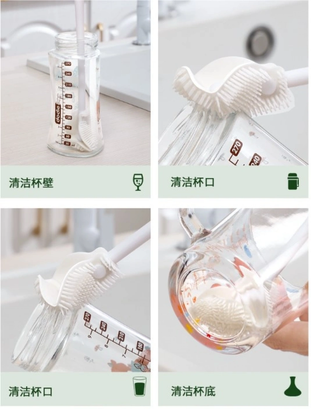 KAVANOZ VE BİBERON YIKAMA FIRÇASI SİLİKON Kavanoz ve biberonlarınızı zahmetsizce temizlemek için mükemmel bir yardımcı! Bu silikon fırça, hem dayanıklılığı hem de etkin temizleme gücü ile öne çıkar. İşte bazı özellikleri:Silikon Kafası: Silikon malzeme, lekeleri ve kirleri nazikçe temizlerken aynı zamanda yüzeylere zarar vermez. Ayrıca, silikon kıllar bakteriyel birikimleri önlemeye yardımcı olur.Ergonomik Tasarım: Kolay kavranabilir ergonomik sapı sayesinde temizlik işlemi rahat ve konforlu bir şekilde yapılır. Uzun sapı, derin kavanozlar ve biberonlar gibi zor ulaşılan yerlerde bile etkili temizlik sağlar.Kolay Temizlik: Silikon malzeme sayesinde fırçayı temizlemek oldukça basittir. Sıcak su ve sabunla yıkanabilir, bu sayede hijyenik kalmasını sağlar.Çok Amaçlı Kullanım: Yalnızca biberon ve kavanozlar için değil, aynı zamanda diğer mutfak gereçleri ve aksesuarlar için de kullanabilirsiniz.Dayanıklı ve Uzun Ömürlü: Silikon malzeme, uzun süre dayanacak şekilde tasarlanmıştır ve sık kullanıma karşı dayanıklıdır.Bu silikon kavanoz ve biberon yıkama fırçası, hem bebekler hem de yetişkinler için güvenli ve etkili bir temizlik çözümü sunar. Mutfaktaki temizlik işlerinizi kolaylaştırın ve hijyen standartlarınızı yükseltin!