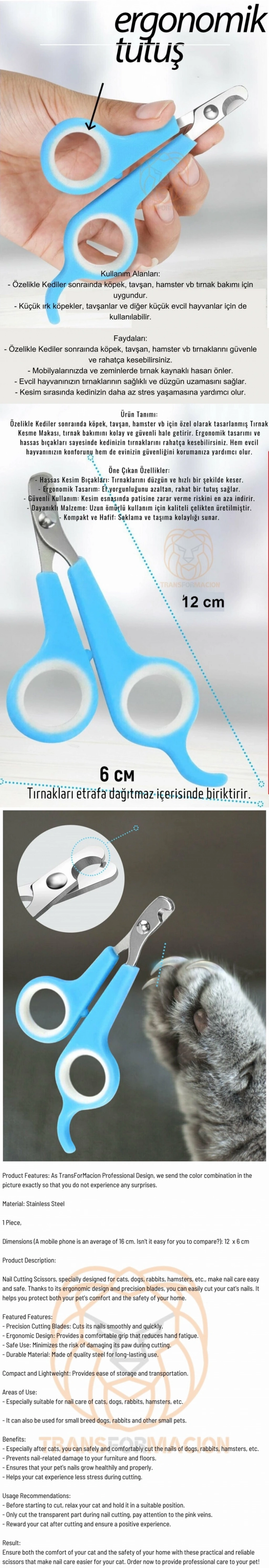Kedinizin tırnak bakımını kolaylaştıran bu pratik ve güvenilir makas ile hem kedinizin konforunu hem de evinizin güvenliğini sağlayın. Evcil hayvanınıza profesyonel düzeyde bakım sunmak için hemen sipariş verin!