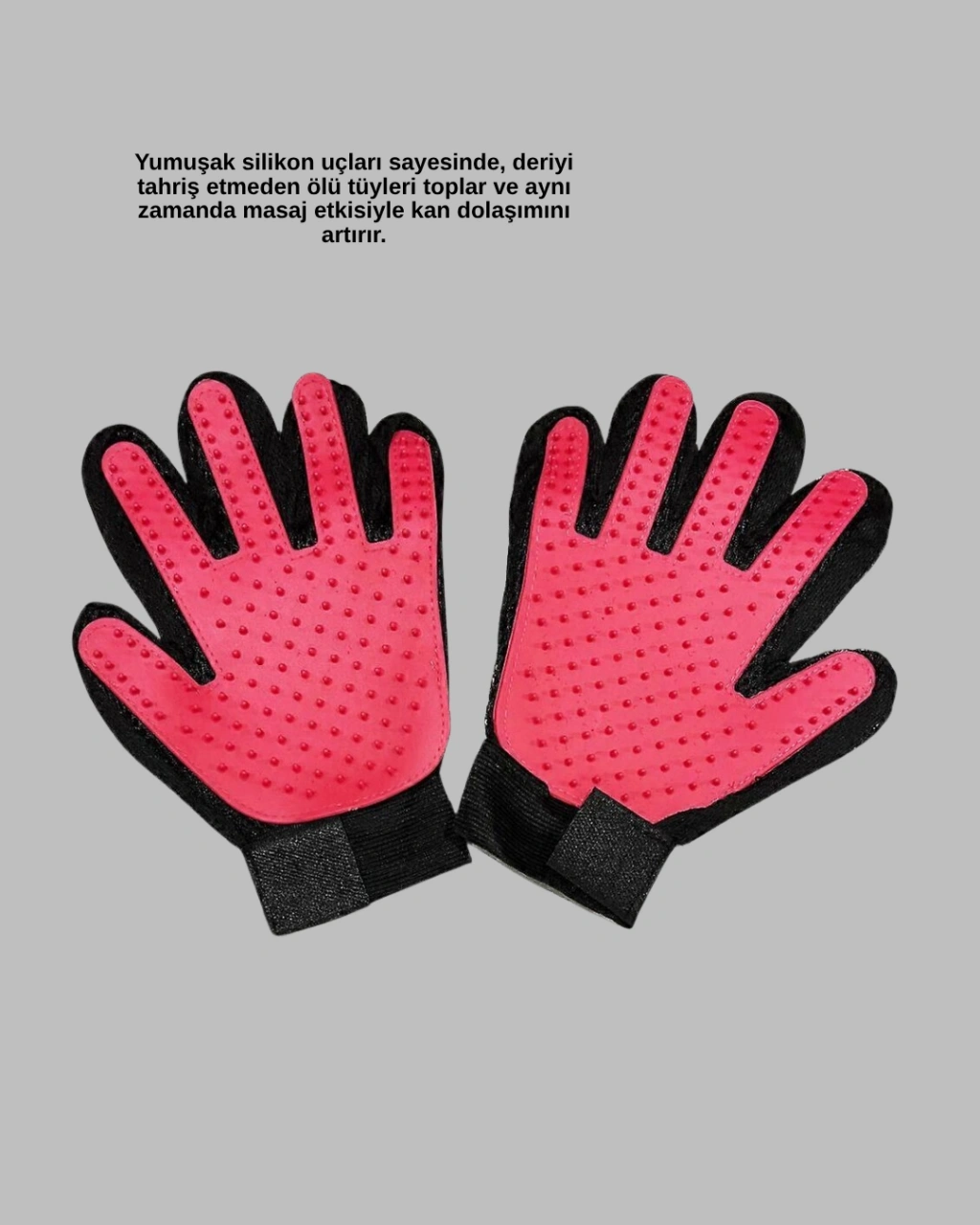 Tüy dökülmesini azaltmak ve evcil dostunuza rahatlatıcı bir bakım sunmak istiyorsanız bu ürün tam size göre!Bu özel tüy toplama eldiveni, cilt dostu silikon uçları sayesinde ölü tüyleri toplarken aynı zamanda dostunuza nazik bir masaj yapar.Kısa, uzun veya kıvırcık tüy fark etmeden etkili şekilde çalışır.Toplanan tüyler eldivene yapışır ve kolayca temizlenir. Böylece hem evinizdeki tüy kalıntılarını azaltır hem de düzenli bakım sağlar.Esnek ve nefes alabilen kumaşıyla elinizi sıkmaz, ayarlanabilir bilek bandı ile rahat kullanım sunar.Makinede yıkanabilir yapısı sayesinde hijyenik kullanım sağlar.Cilt tahrişine neden olmayan malzeme yapısı, dostunuzun hassas derisini korur.Hem siz hem de evcil dostunuz için keyifli bir bakım deneyimi yaratır.
