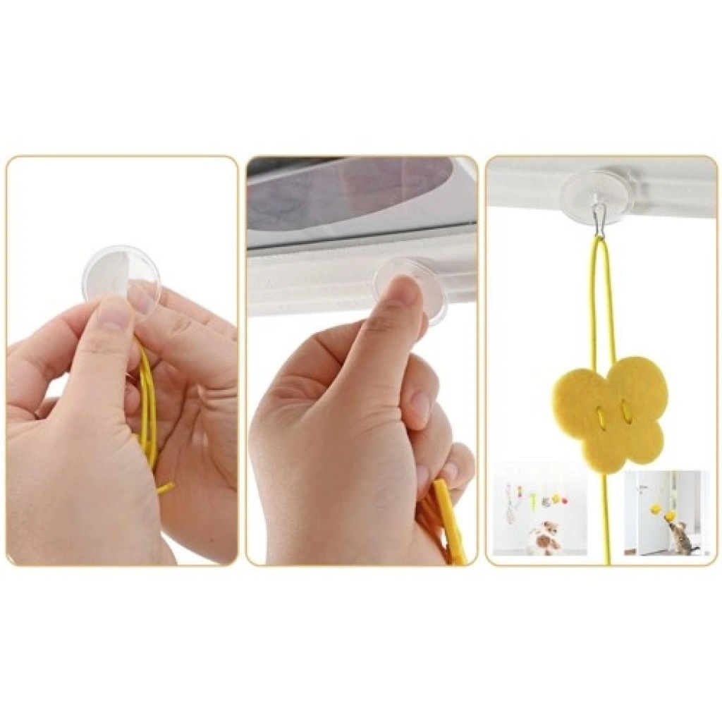 Eğlenceli ses: kedilerin dikkatini çekmek ve oyunu daha eğlenceli hale getirmek için çanlarla donatılmıştır.Elastik halat tasarımı, ip elastik çekilip uzayabilir tasarımlıdır , alttaki küçük oyuncakları ile sallanmasını sağlar. Paket İçeriği:Adet Kelebek Model Elastik Kendinden Yapışkanlı Kedi Oyun Oltası