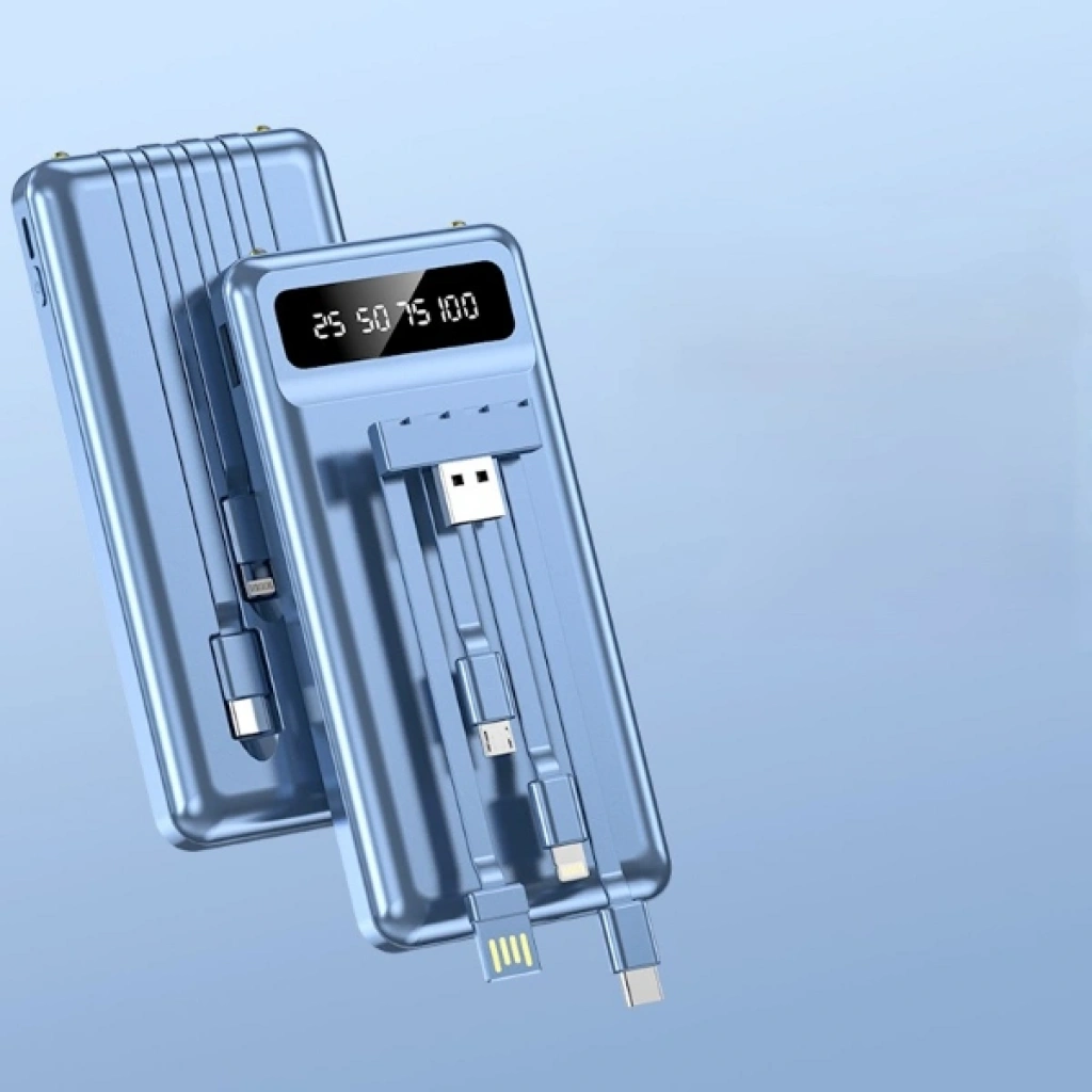 Kendinden kablolu 20.000 mAh Powerbank, güçlü batarya kapasitesi ve pratik kullanım sunan dahili kabloları ile gün boyu kesintisiz enerji desteği sağlar. Üzerinde entegre olarak bulunan Type-C, Lightning, Micro USB ve USB çıkışları sayesinde ekstra kablo taşıma ihtiyacını tamamen ortadan kaldırır. Aynı anda birden fazla cihazı hızlı şarj edebilir; telefon, tablet, kulaklık ve diğer elektronik ürünlerle tam uyum sağlar. Dijital LED ekranı sayesinde kalan şarj seviyesini kolayca takip edebilir, seyahatlerde, işte veya acil durumlarda kesintisiz kullanım elde edebilirsiniz. Dayanıklı dış yüzeyi, kompakt tasarımı ve yüksek performansı ile uzun süre güvenle kullanılabilecek güçlü bir taşınabilir şarj çözümüdür. Paket İçeriği1 adet 20.000 mAh kendinden kablolu powerbank