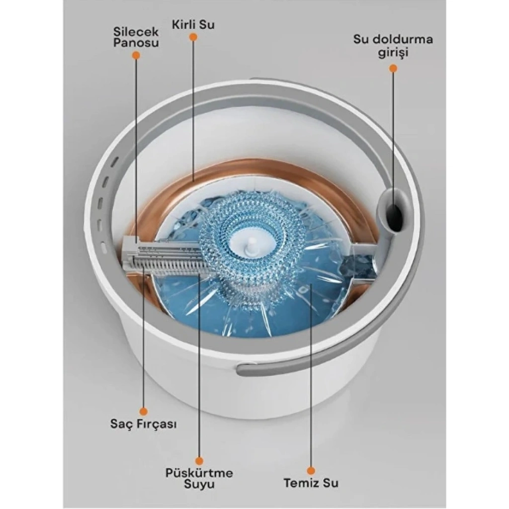 Kirli ve temiz suyu ayrı bölmelerde toplayan pratik mop, temizlik sırasında suyun hijyenik şekilde yönetilmesini sağlar. Alt haznedeki ayrıştırma sistemi sayesinde kirli su birikecek özel kanala yönlendirilirken, temiz su bölmesinden her baskıda yeniden durulanmış mop elde edilir. Bu sayede zeminde temizlik yaparken sürekli temiz suyla çalışabilir ve çok daha hijyenik bir sonuç elde edersiniz. Ergonomik tasarımı sayesinde kullanım sırasında ellerin suya temasını engeller, mop başlığı üzerindeki fırça paneli ile saç, toz ve kirler kolayca temizlenir. Kirli suyu dökmek için özel tahliye kanalı bulunur ve bu kanal hızlı, dağılmadan ve sıçratmadan boşaltım yapmanıza yardımcı olur. Dayanıklı malzemeden üretilmiş olup uzun süreli kullanım sunar. Ürün kutusundan iki adet yedek mikrofiber mop başlığı ile birlikte gelir ve mikrofiber yapısı daha yüksek su tutma ve etkili leke çıkarma performansı sağlar. Paket İçeriği1 adet Kirli Ve Temiz Suyu Ayıran Pratik Mop