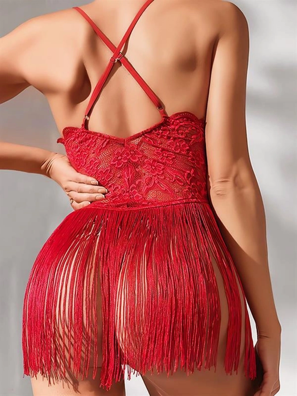 'in kırmızı püsküllü dantel detaylı fantezi geceliği, hem cesur hem de zarif bir seçenek sunuyor. Bu özel parça, dantel detayları ve çekici püsküller ile göz alıcı bir görünüm sunuyor. Kırmızı rengi ile tutkulu bir hava yaratırken, vücuda tam oturan kesimiyle de çekiciliği ön plana çıkarıyor. 'in özel tasarımı olan bu gecelik, romantik anlarınıza tutku katacak. Kendinizi özel ve çekici hissetmek istediğinizde, bu kırmızı püsküllü dantel detaylı fantezi geceliği tercih edebilirsiniz.