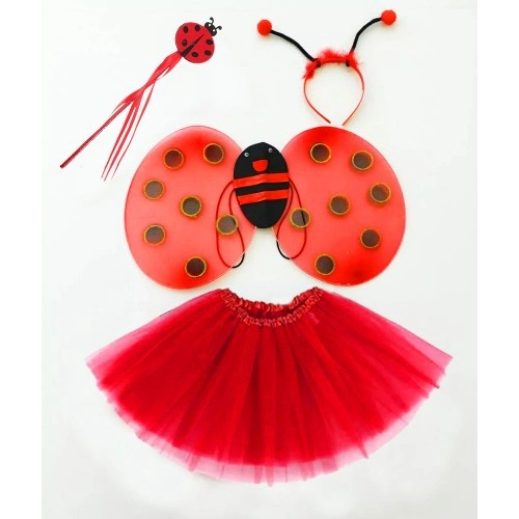 Kırmızı Uğur Böceği Ateş Böceği Kostüm Seti – Tütü, Kanat, Taç ve AsaÇocukların hayal dünyasını renklendiren kırmızı uğur böceği ateş böceği kostüm seti, sevimli tasarımı ve canlı renkleriyle parti ve özel günlerin vazgeçilmez kostüm seçeneklerinden biridir. Eğlenceli detaylarıyla yalnızca bir kostüm değil, aynı zamanda çocukların oyunlarına eşlik eden keyifli bir aksesuar seti sunar.Set içerisinde yer alan kırmızı tütü etek, hafif ve kabarık yapısı sayesinde çocukların rahatça hareket etmesini sağlar. Uğur böceği / ateş böceği desenli kanatlar, sırta kolayca takılabilen lastik bantları ile konforlu bir kullanım sunar ve kostüme gerçekçi bir görünüm kazandırır. Taç, anten veya figür detaylarıyla kostümü tamamlar; hafif yapısı başı sıkmaz. Asa ise üzerindeki figür ve renkli detaylarıyla çocukların hayal gücünü harekete geçirir. Doğum günü partileri, okul gösterileri, tiyatro oyunları, kostüm partileri ve evde oyun zamanları için ideal olan bu uğur böceği kostüm seti, çocukların eğlenerek vakit geçirmesine yardımcı olur. Rahat, hafif ve güvenli malzemelerden üretilmiş olması sayesinde uzun süreli kullanımlarda konfor sağlar ve çocukların keyifle kullanabileceği eğlenceli bir kostüm alternatifi sunar.