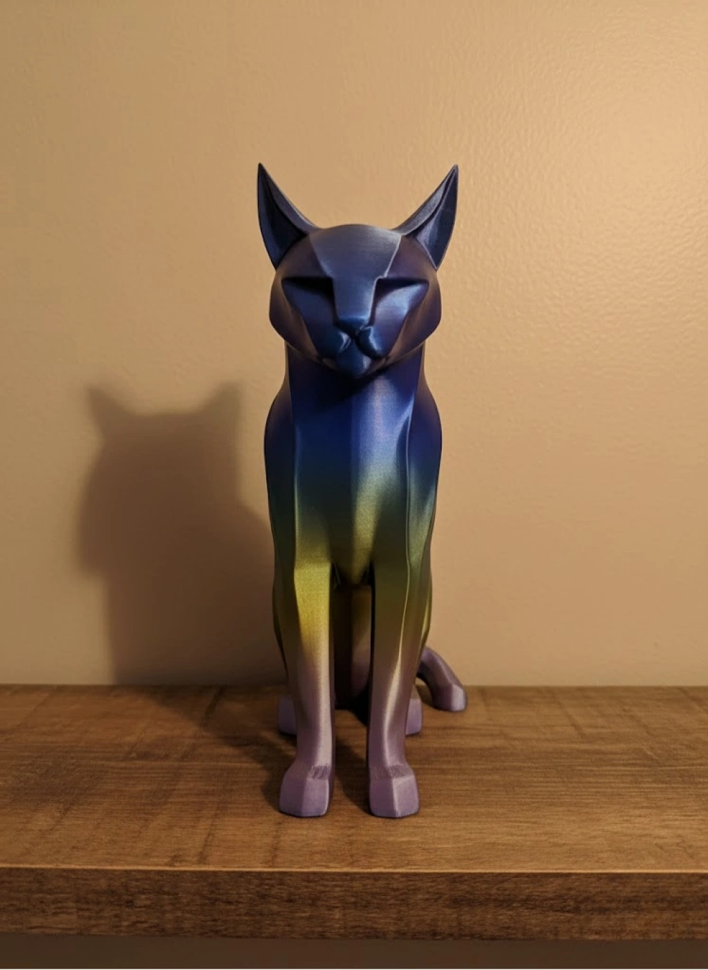Koyu Rainbow Kedi biblo, modern tasarımı ve geçişli renk yapısı ile dekorasyona güçlü bir karakter kazandırır. 18×25 cm ölçüsü sayesinde raf, masa, konsol veya TV ünitesi üzerinde dengeli ve dikkat çekici bir görünüm sunar. Loş aydınlatmalı salonlarda renk geçişleri daha belirgin hale gelerek ürüne derinlik katar. Minimal ve modern dekorasyon tarzlarını tamamlayan bu figür, yaşam alanlarına sanatsal bir dokunuş ekler.