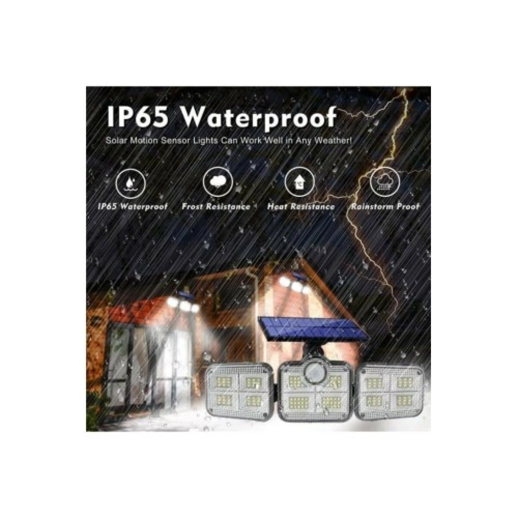 122 Parlak SMD LED: Yüksek yoğunluklu aydınlatma kapasitesi ile karanlık alan bırakmaz.3 Farklı Çalışma Modu: 1. Sensör Modu: Hareket algıladığında tam parlaklık yanar, hareket bitince kapanır.2. Loş Işık + Sensör: Sabit loş ışık yanar, hareket algıladığında maksimum parlaklığa geçer.3. Sabit Işık: Gece boyunca sabit ve enerji tasarruflu modda yanmaya devam eder.270° Geniş Aydınlatma Açısı: Ayarlanabilir kanatları sayesinde ışığı geniş bir alana yayar.Akıllı Uzaktan Kumanda: Lambaya merdiven dayamadan modlar arasında kolayca geçiş yapmanızı sağlar.Ayrı Panel Avantajı: Solar panel ile lamba arasındaki kablo bağlantısı sayesinde, paneli güneşin en dik geldiği yere, lambayı ise aydınlatmak istediğiniz karanlık bölgeye (gölge olsa dahi) monte edebilirsiniz.IP65 Su Geçirmezlik: Yağmur, kar ve kavurucu sıcaklara karşı tam dayanıklı ABS+PC gövde yapısı.Kullanım AvantajlarıSıfır Enerji Maliyeti: %100 güneş enerjisi ile çalışır, faturaya yansımaz.Güvenlik Artırıcı: PIR hareket sensörü, bahçenize yaklaşan her türlü hareketli ısı kaynağını anında algılar.Estetik ve Modern Görünüm: Villalar, site içleri ve modern yapılar için dekoratif bir sokak lambası görünümü sunar.Kolay Montaj: Kablo çekme, sigorta bağlama derdi olmadan sadece iki vida ile duvara sabitlenebilir.Kullanım AlanlarıBahçe yolları, villa girişleri ve garaj önleri.Sokak aydınlatması olmayan karanlık dar yollar.Teras, avlu, güverte ve çiftlik evleri.Güvenlik amaçlı giriş kapıları ve karanlık kör noktalar.Teknik ÖzelliklerLED Sayısı: 122 Adet SMD LEDSolar Panel: 1.8W, 5.5V Verimli PanelBatarya: 3.7V 2400mAh Li-ion PilAlgılama Mesafesi: 5 - 8 Metre (16-26 Feet)Sensör Açısı: 120 DereceIşık Rengi: 6500K (Beyaz Işık)Malzeme: Yüksek Dayanımlı ABS + PCPaket İçeriği1 Adet 122 LEDli Solar Aydınlatma Ünitesi1 Adet Uzaktan KumandaMontaj Aparatları ve Vidaları