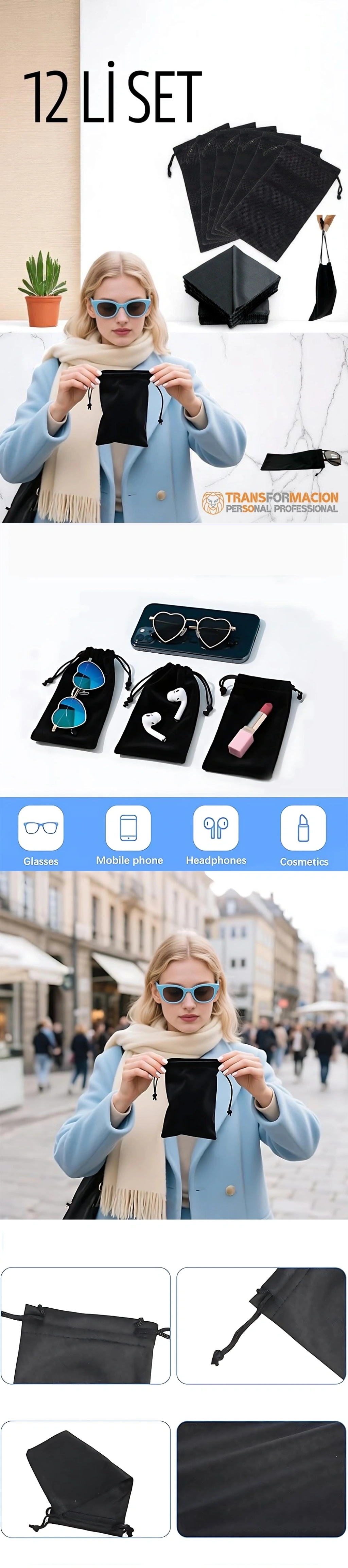 TRANSFORMACION Profesyonel Çekme İpli Gözlük Kılıfı – 6'li Paket + 6 Adet Silme Bezi Hediyeli