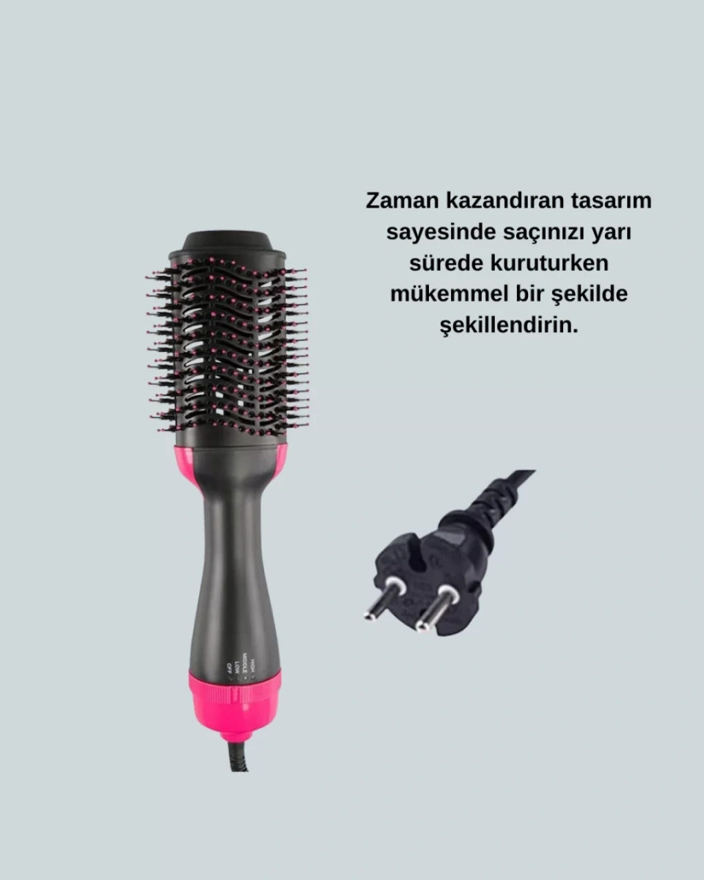 1200W Kurutmalı Saç Şekillendirici Fönlü Fırça, günlük saç bakım rutininizi pratik ve etkili hale getirmek için tasarlanmıştır. Güçlü 1200W motoru sayesinde saçınızı hızlı bir şekilde kuruturken aynı anda şekil verir. Negatif iyon teknolojisi, saç tellerindeki elektriklenmeyi azaltmaya yardımcı olur ve daha pürüzsüz, parlak ve canlı bir görünüm elde etmenizi sağlar. Özellikle kabaran ve zor şekil alan saçlarda daha kontrollü ve bakımlı bir sonuç sunar.3 farklı ısı seçeneği (soğuk, düşük ve yüksek) ile her saç tipine uygun kullanım imkânı tanır. İnce telli saçlar için düşük ısı, kalın ve yoğun saçlar için yüksek ısı tercih edilebilir. Soğuk hava ayarı ise şeklin sabitlenmesine destek olur. 60°C ile 120°C arasında değişen sıcaklık aralığı, saçın ihtiyaç duyduğu kontrollü ısıyı sağlar.Oval fırça tasarımı ve yuvarlatılmış kenarları sayesinde saç köklerinde hacim oluştururken uçlarda yumuşak ve doğal bir kıvrım sağlar. Düzleştirme, hacim verme veya hafif dalga oluşturma gibi farklı stiller için uygundur. Fırçayı saçın altına yerleştirip uçlara doğru yuvarlayarak ve diplerde kısa süre bekleterek dolgun bir görünüm elde edebilirsiniz.360° dönebilen 2,5 metre uzunluğundaki kablosu, kullanım sırasında rahat hareket etmenizi sağlar ve kablo dolaşmasını önler. Hafif ve ergonomik yapısı sayesinde uzun süreli uygulamalarda bile konfor sunar. 110-240V / 50-60Hz gerilim desteği ile farklı elektrik altyapılarında güvenle kullanılabilir.Hem kurutma hem şekillendirme işlemini tek cihazla gerçekleştirmek isteyenler için ideal olan bu saç şekillendirici, evde profesyonel görünümlü sonuçlar elde etmenize yardımcı olur. Günlük kullanımda zamandan tasarruf sağlarken saçlarınıza hacimli, parlak ve bakımlı bir görünüm kazandırır.