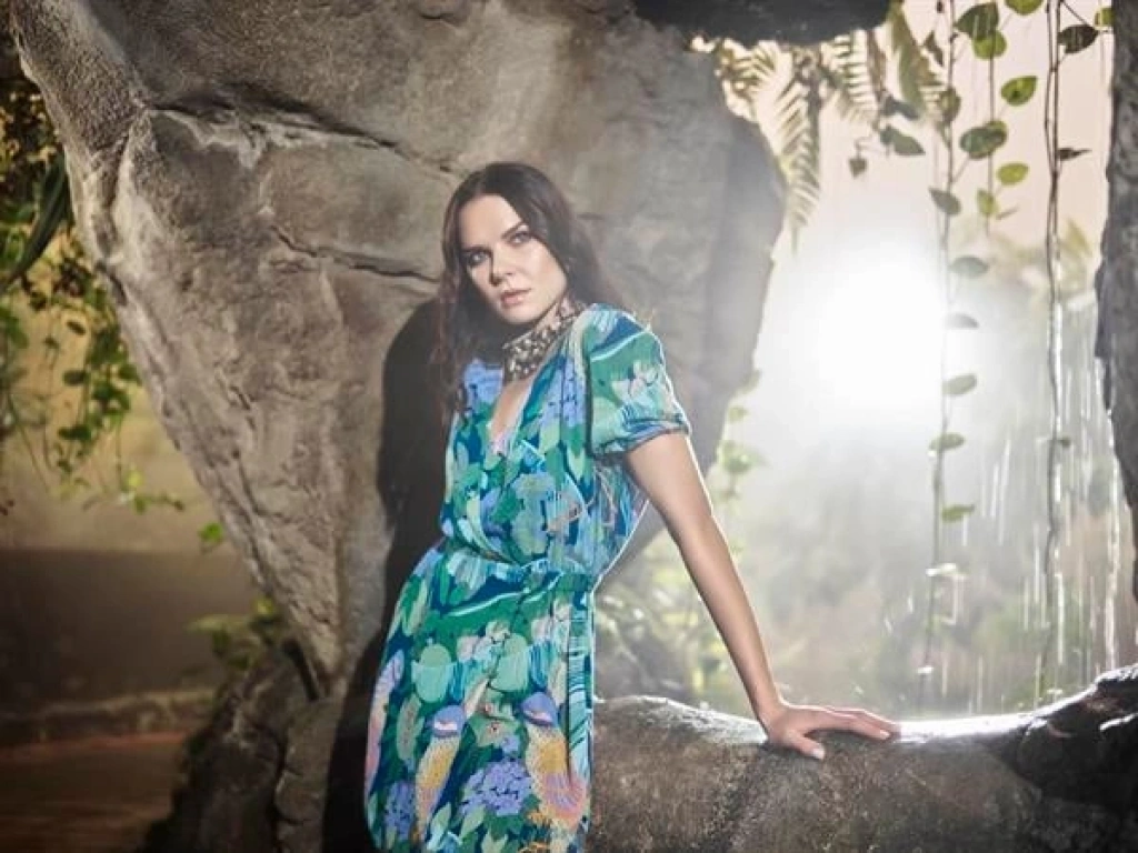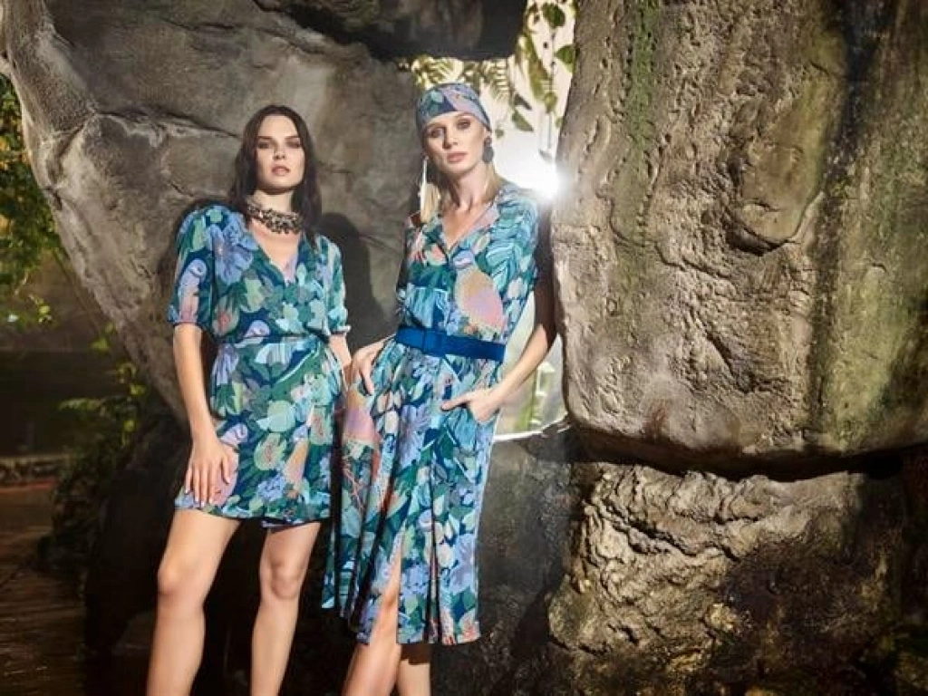 Elbise: V yakalıdır, önü düğmelidir, kuş ve yaprak desenlidir, kısa kolludur, dokuma kumaştır.