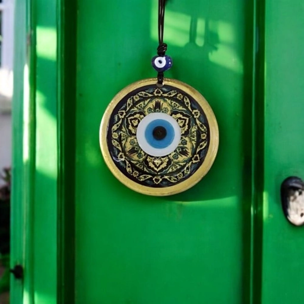 Lale Desenli Altın Rengi Nazar Boncuklu Füzyon Cam Duvar DekoruLale, zarafeti, estetiği ve geleneksel anlamları simgeleyen özel bir motif olarak bu altın rengi nazar boncuklu cam duvar dekorunda şık bir tasarımla buluşmaktadır. Altın varaklı detaylar, lale deseninin zarif duruşunu ön plana çıkarırken nazar boncuğu figürü ürüne koruyucu ve anlamlı bir sembol kazandırır.Ürünümüz füzyon cam tekniği kullanılarak tamamen el işçiliği ile üretilmiştir. Camın parlak yüzeyi ve altın varaklı süslemeleri ışığı estetik bir şekilde yansıtarak bulunduğu ortama sıcak ve sofistike bir atmosfer katar. El emeğiyle hazırlanması sayesinde her ürün kendine özgü ve özel bir karakter taşır.Lale desenli altın rengi nazar boncuklu duvar süsümüz 12 santimetre çapındadır. İp dahil toplam uzunluğu 25 santimetredir. Hafif ve dengeli yapısı sayesinde duvara, kapıya veya pencere önüne kolaylıkla asılabilir. Salon, antre, ofis ve iş yeri dekorasyonları için ideal olan bu füzyon cam duvar dekoru; yeni ev hediyesi, iş yeri açılışı ve özel günler için zarif ve anlamlı bir hediyelik alternatifi sunar.