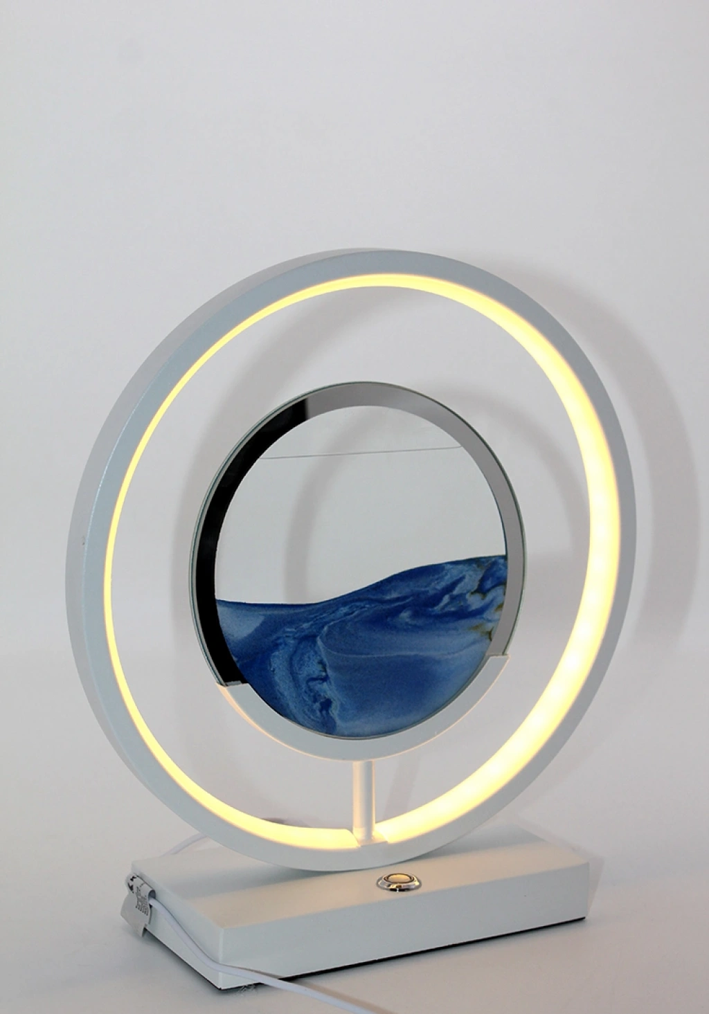 Ledli Sulu Kum Saati Model 2, yuvarlak tasarımı ve etrafını saran LED ışıkla şık ve modern bir görünüm sunan dekoratif bir zaman ölçerdir. Sıvı içinde hareket eden renkli kum tanecikleri, dinlendirici ve estetik bir görsel deneyim sağlarken, daire şeklindeki LED ışıklandırması loş ortamlarda etkileyici bir atmosfer oluşturur. Ev, ofis, çalışma masası veya terapi ortamları için mükemmel bir dekoratif aksesuar olup, modern iç mekan tasarımlarına zarif bir dokunuş katar.Paket İçeriği1 adet Ledli Sulu Kum Saati Model 2