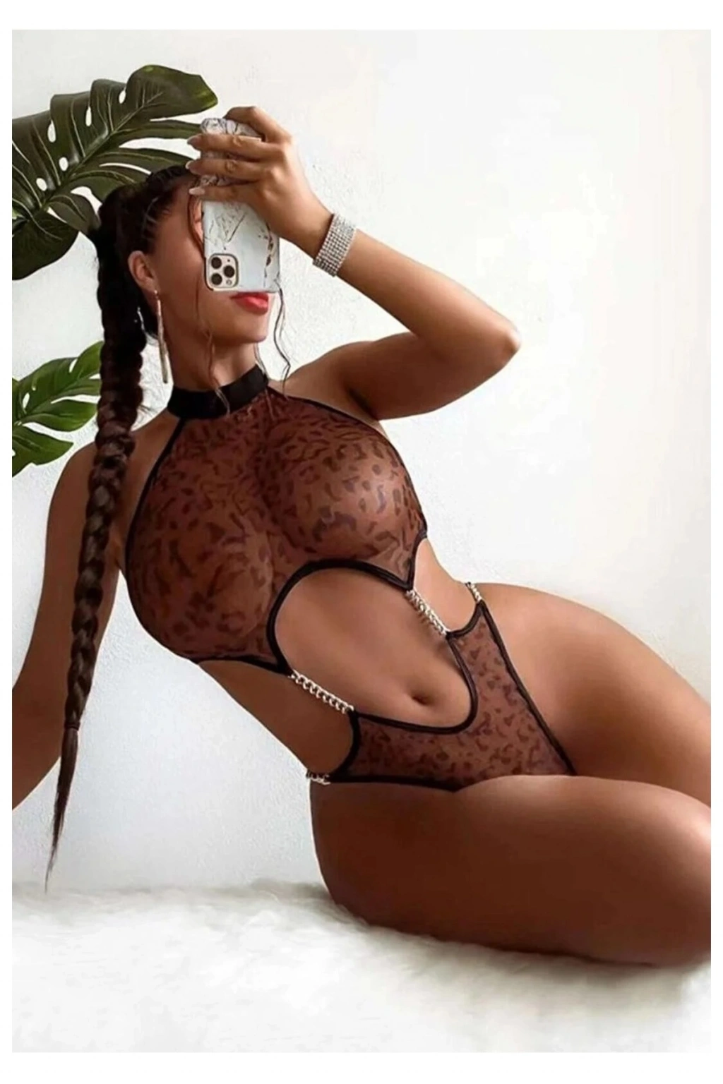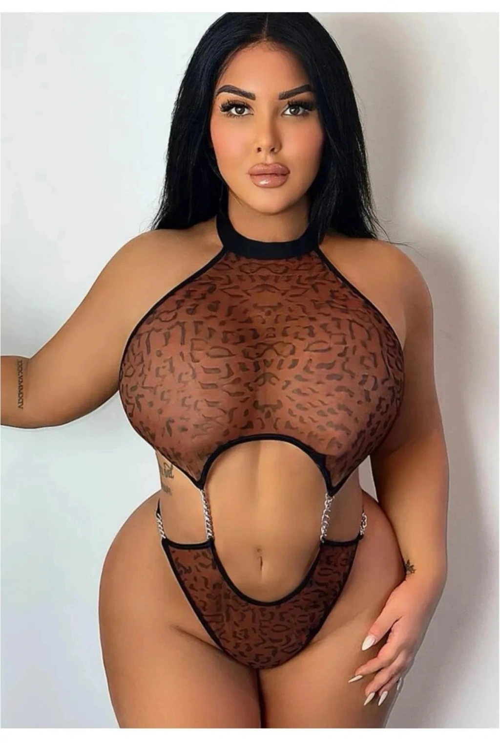 Leopar Büyük Beden Fantezi Gecelik Özel Gece Kostümü Gece Kıyafeti